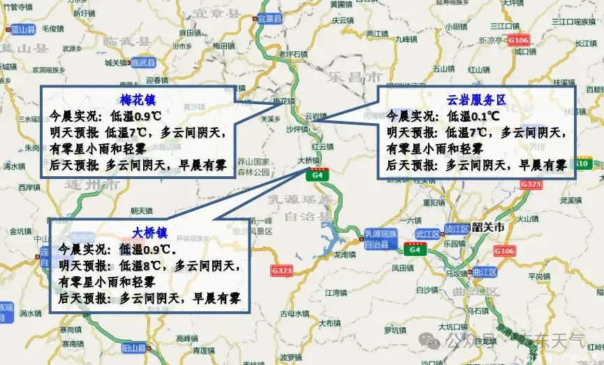 本轮冷空气的最冷大招,如期放在了今天(9日)早晨,韶关、河源、梅州等粤北市县最低气温直接跌破5℃,中东部大多不足10℃。另外,韶关、清远、肇庆北部今早受中层波动影响还飘起了小雨,阴冷的感觉还是很明显的。