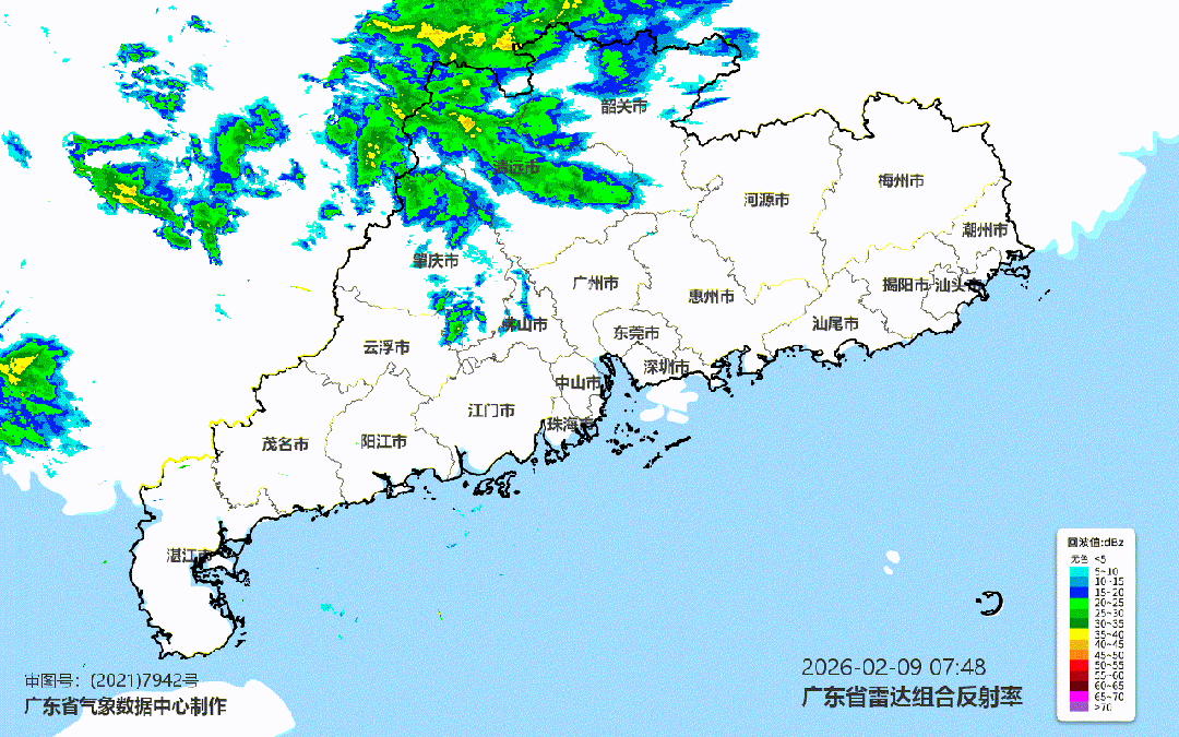 9日,粤北和肇庆北部市县多云转阴天,有小雨,其余大部市县多云,局部有小雨。