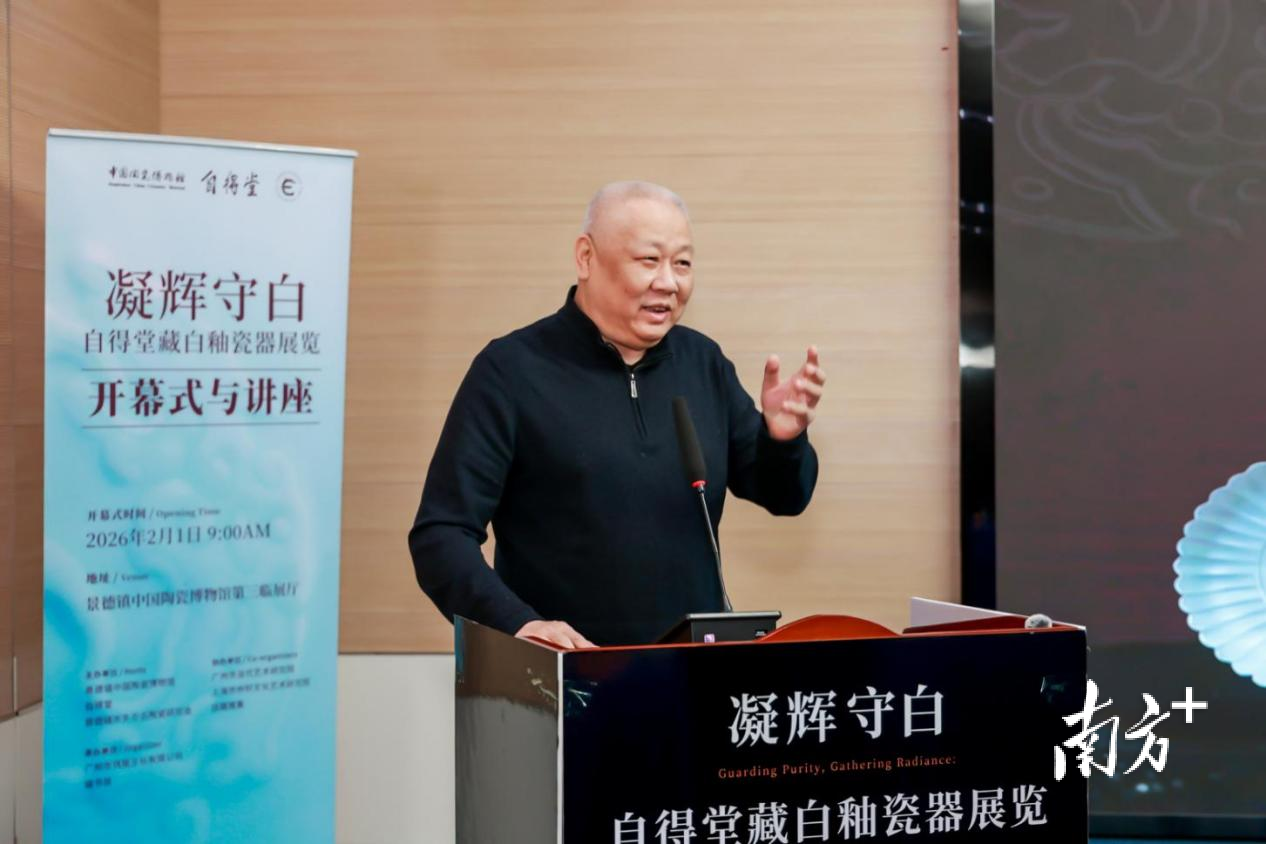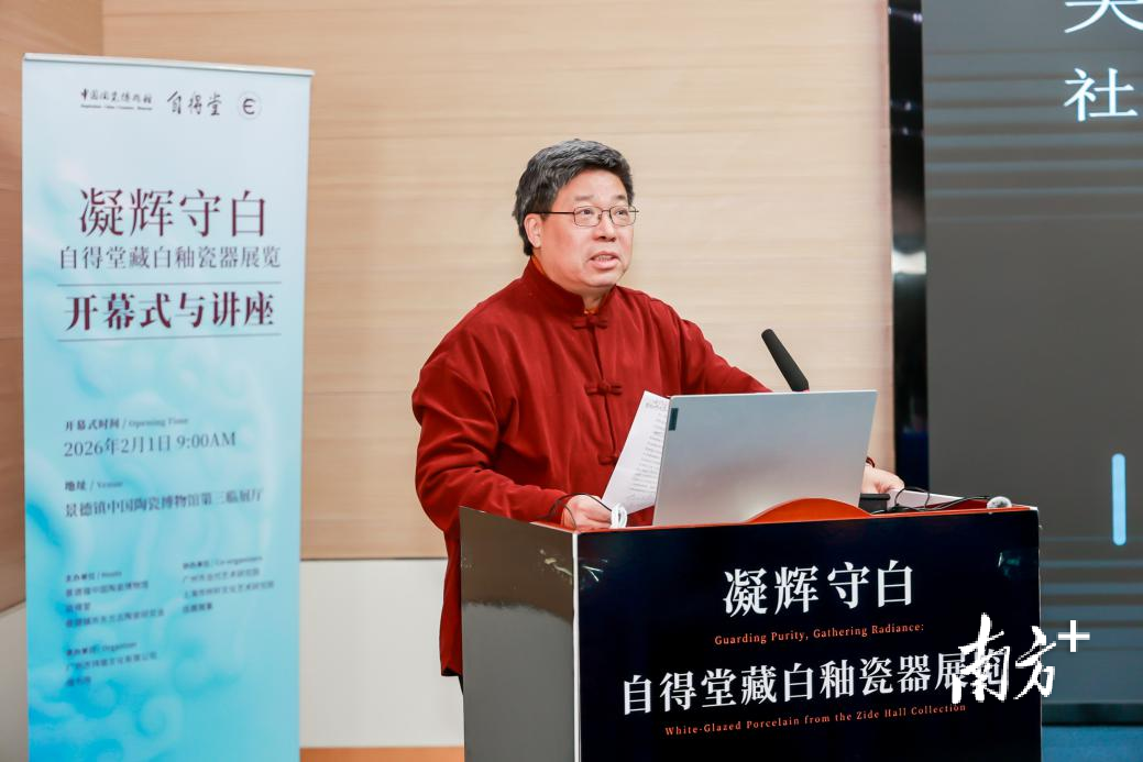 2026年2月1日,“凝辉守白——自得堂藏白釉瓷器展览”在景德镇中国陶瓷博物馆开幕。景德镇多位领导和近百名业内知名专家学者参与开幕剪彩仪式。这场展览由专家、学者在自得堂藏品里甄选出历代白釉瓷器精品,向公众展示中国古代白釉瓷器独特的美学风貌与工艺成就。