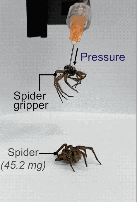 莱斯大学的研究人员通过给死蜘蛛体内注入空气、调整气压,成功重启了这套液压系统。这套气动驱动的死灵抓手能稳稳抓起1.3倍自重的物体,甚至在经历700次循环后依然相当好用。