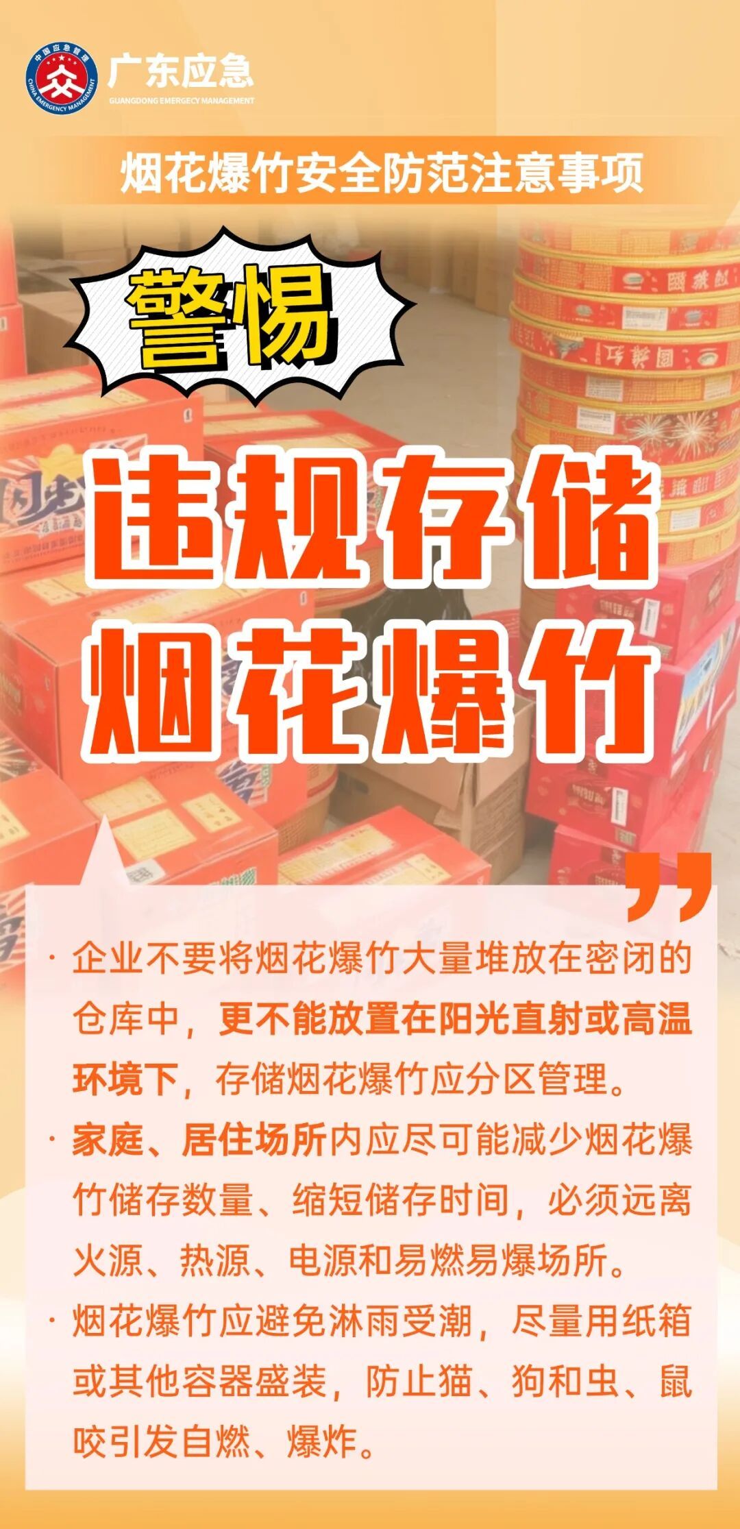 然而,烟花爆竹属于易燃易爆物品,从生产、经营、储存、运输、燃放到废弃销毁全过程均具有高危属性,非法生产、销售、储存烟花爆竹等行为,安全隐患极大。这份安全防范注意事项请收下: