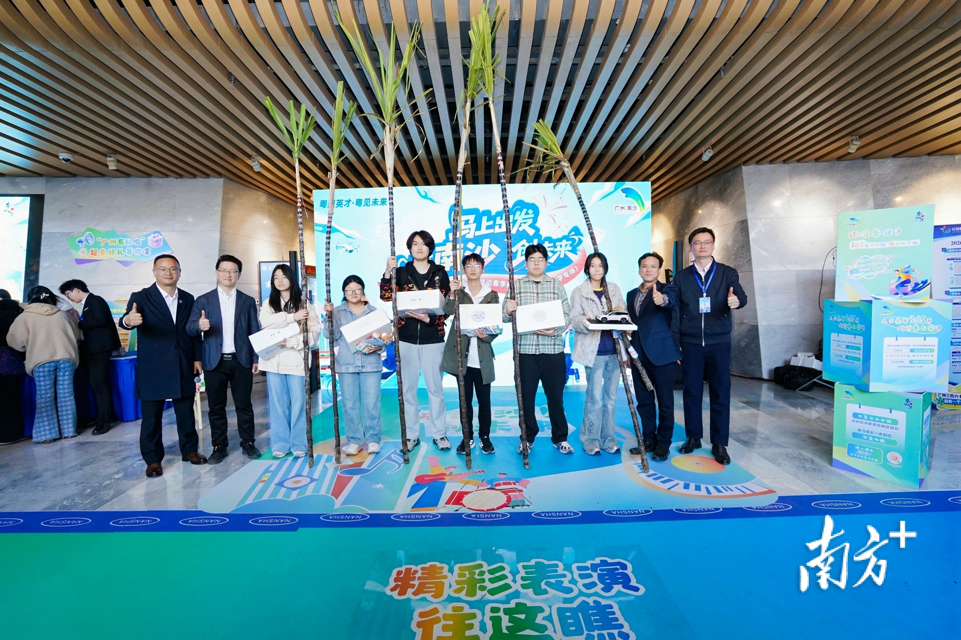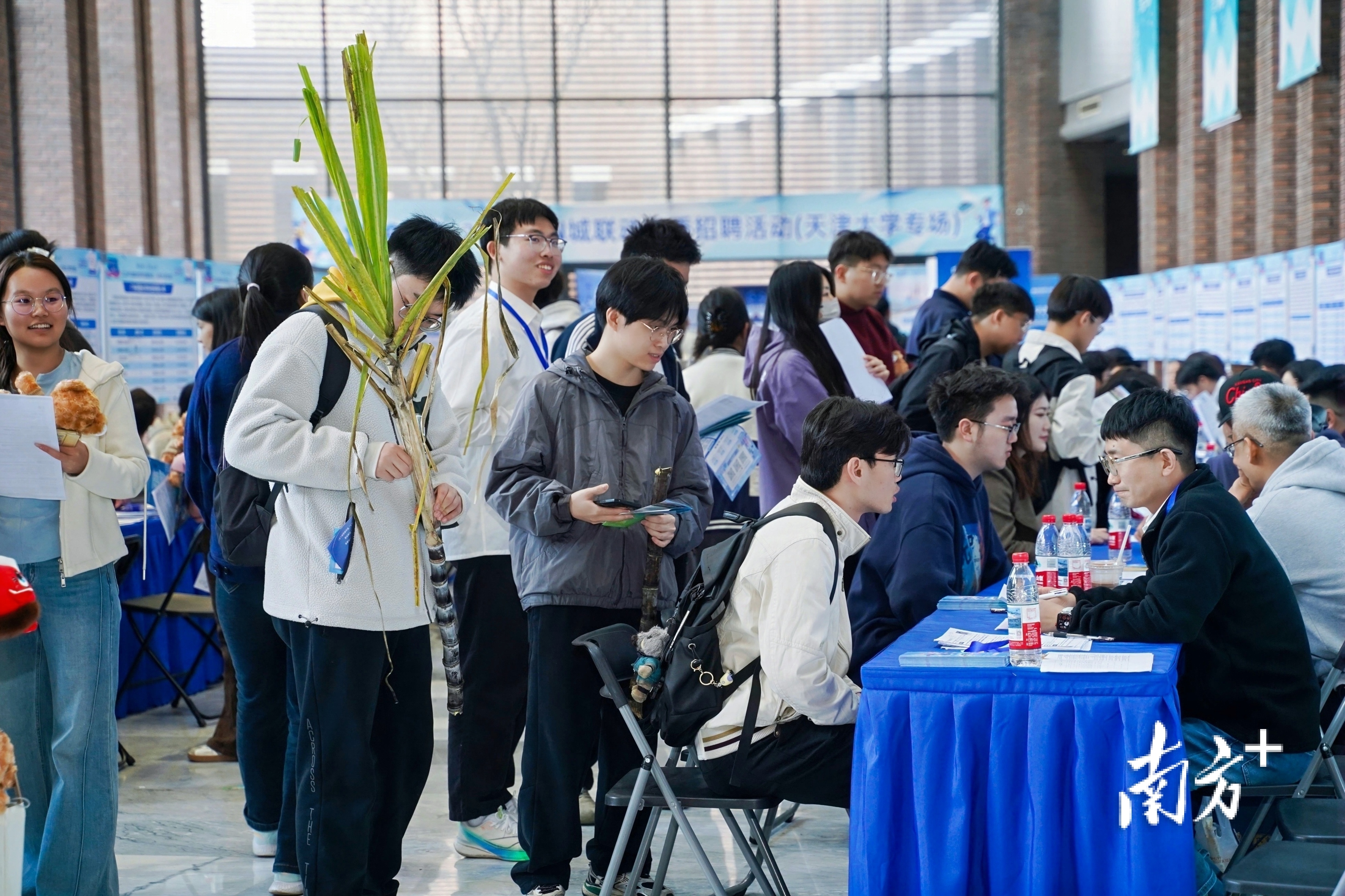在天津大学,举办的“粤年轻·粤精彩”人才嘉年华现场不仅设置互动游戏与乐队表演,更特意准备了寓意“掂过碌蔗”(粤语,意喻事情顺利)的广东甘蔗赠予学子,祝愿同学们求职之路“节节高升、甜上加甜”。