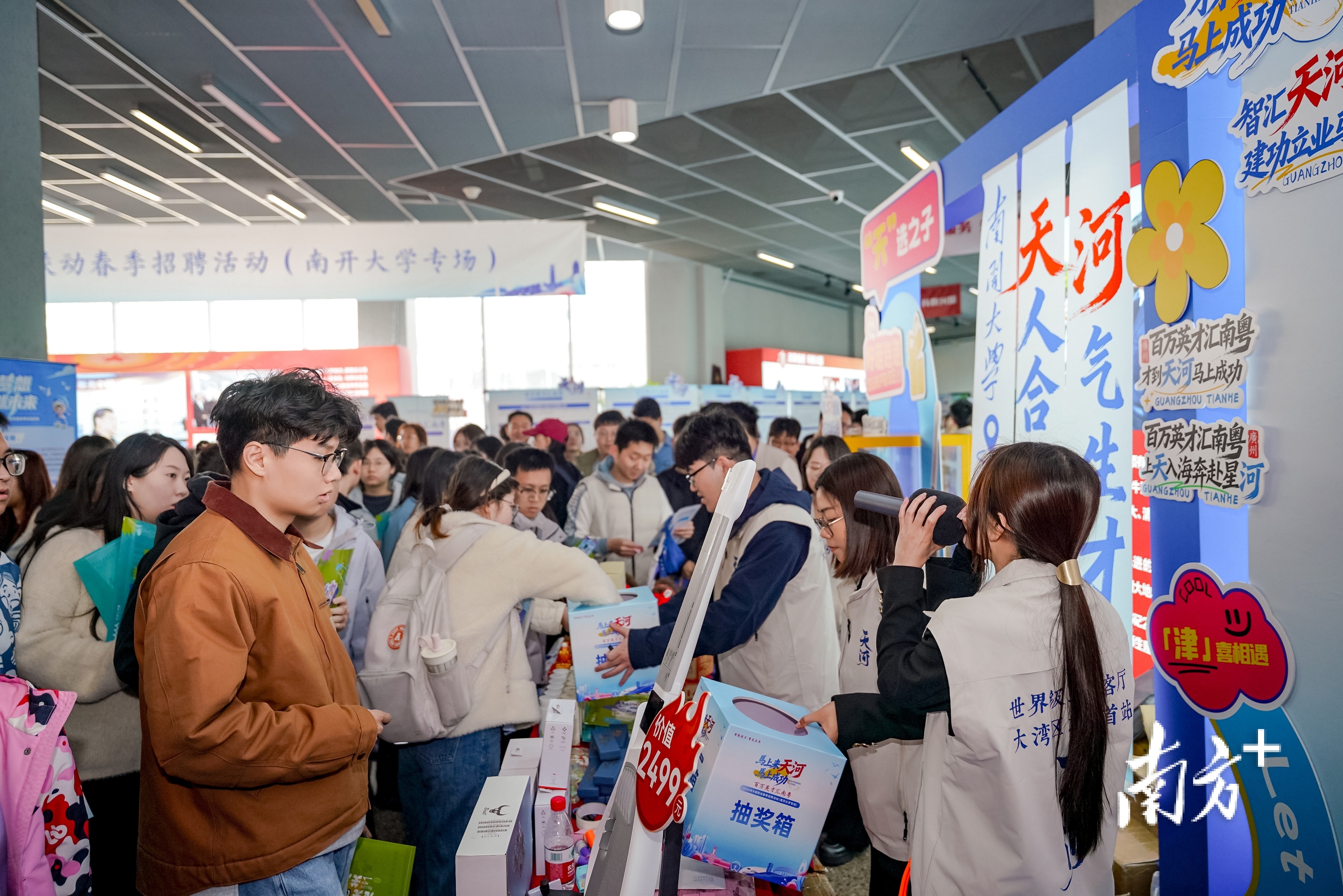 在南开大学,现场被布置为“津天遇见天河”主题漫展,通过创意打卡、引才官互动传递城市潮流感。