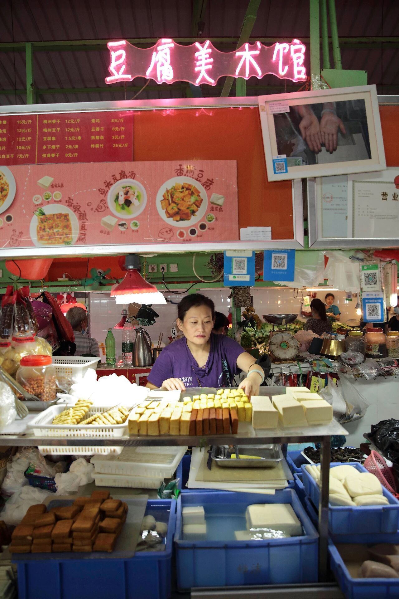相比之下,菜市场里的手写招牌要朴素得多。但“以字招客”的老传统,在这里从未退场。