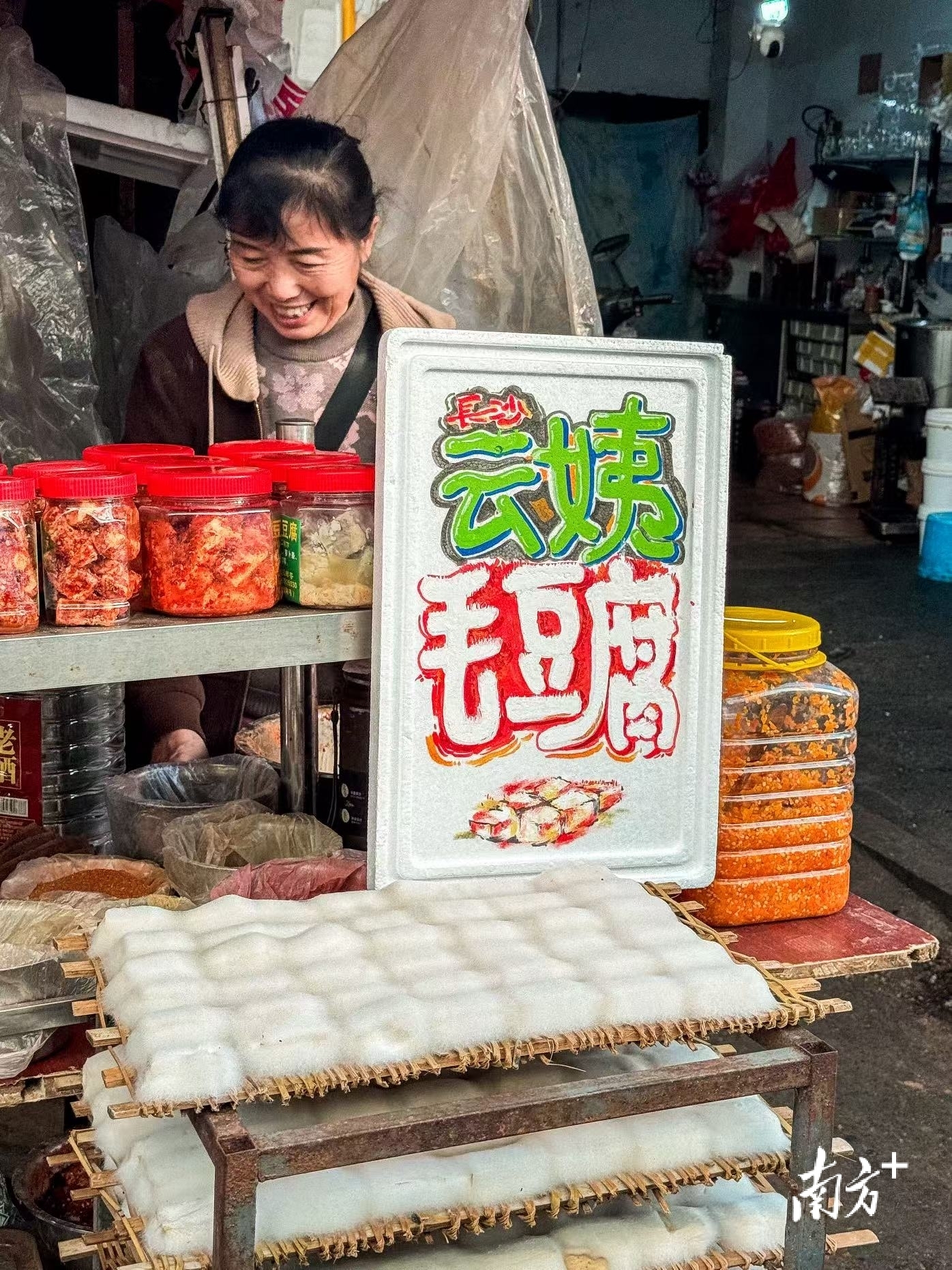 不再需要开口询问,纸板就一张张主动递到手里,海味行的老板接过招牌会直呼“马上过塑”。活泼亮眼的字体,慢慢出现在越来越多的摊位上。有网友调侃,“整个市场的美陈就这么卷起来了。”