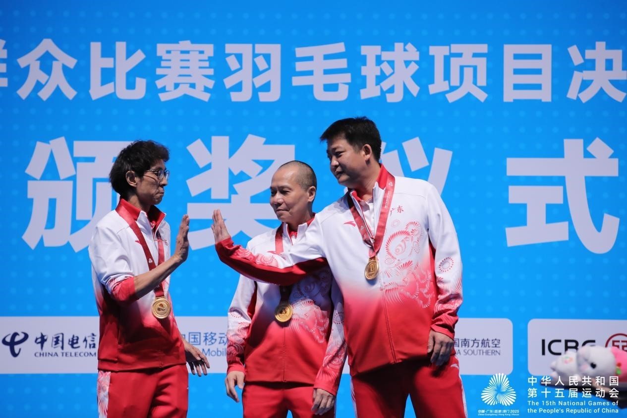 10月26日,第十五届全运会群众羽毛球项目结束单项赛争夺,6枚金牌中,湖北队拿下其中2枚,广东队、香港队、浙江、重庆各收获1金。
