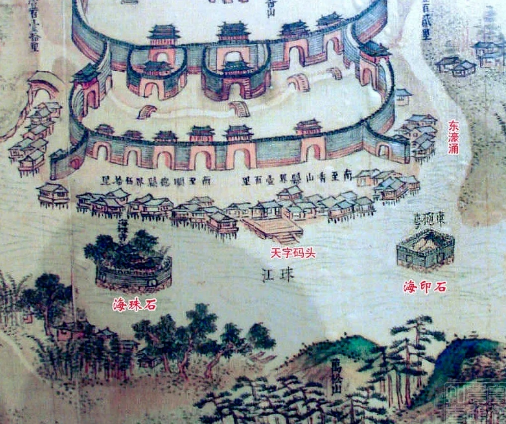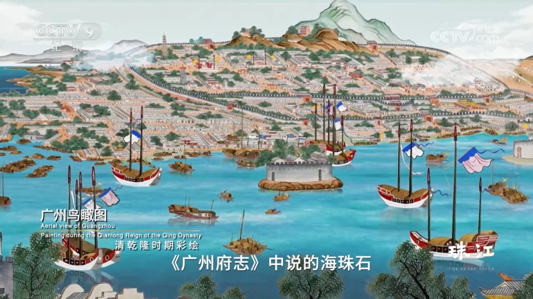 根据《广州府志》的记载:“粤江,一名珠江,以沉珠浦得名。在府城南。”沉珠浦位于府城南三里,江中有块石头叫“海珠石”。