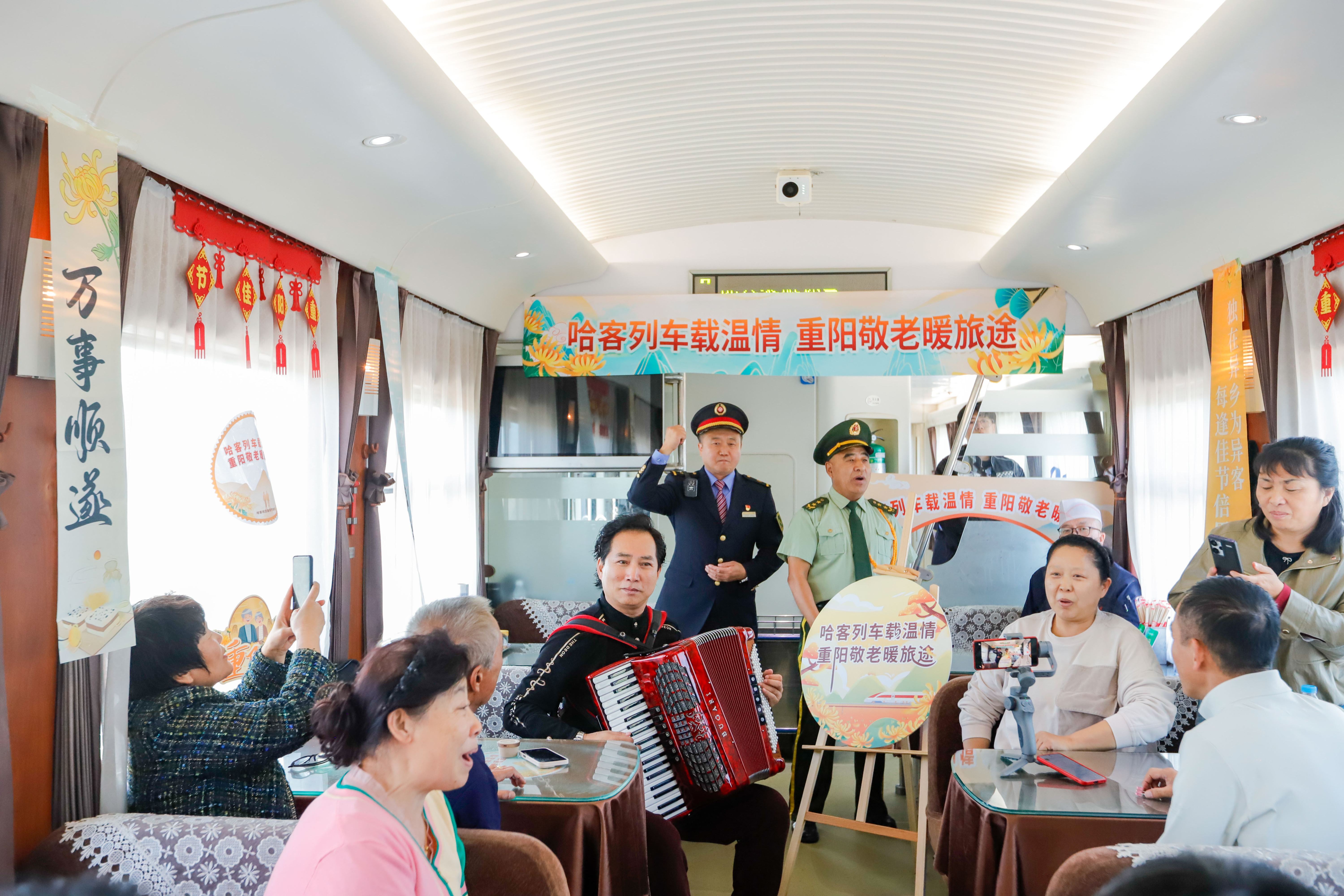 农历九月初九前夕,在哈尔滨西开往海口的Z114次列车上,一场“情暖重阳”主题活动让车厢化身为温馨的敬老空间。这趟纵贯中国南北、单程运行逾4000公里的“候鸟列车”,开行13年来已累计服务旅客超900万人次。