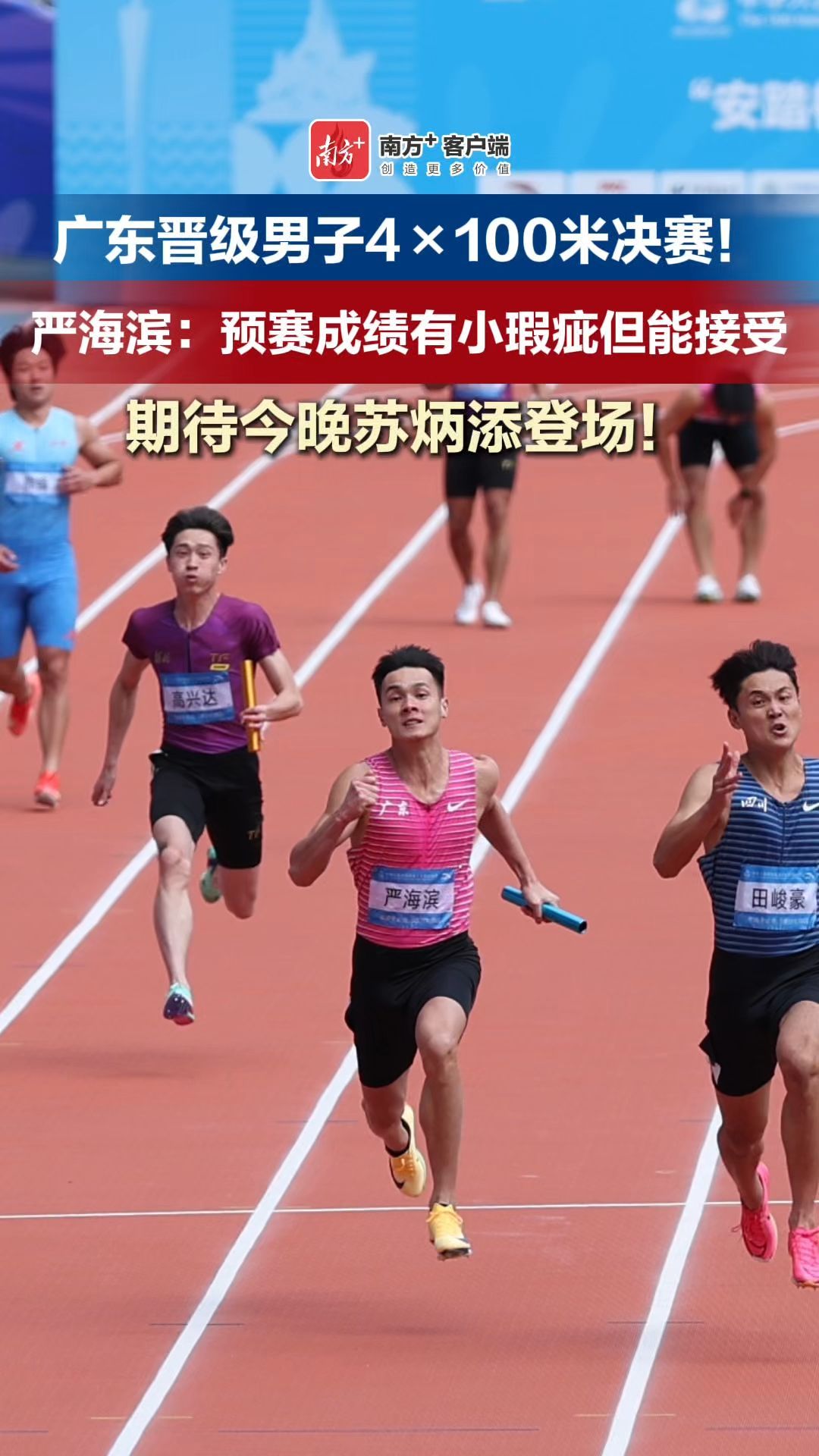 男子4×100米,广东队惊险闯入决赛,今晚苏炳添将领衔出战