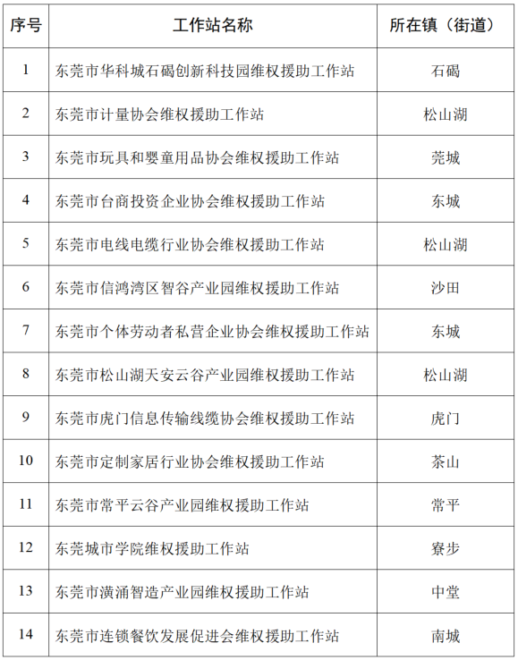附:东莞市知识产权保护中心维权援助工作站名单(第四批)