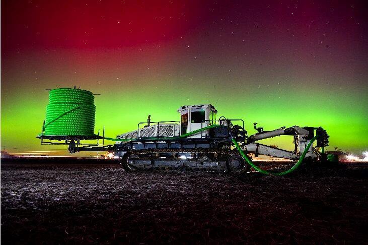 磁暴发生的同时,随着太阳物质高度的进一步下降,其与地球南北极区附近上空的大气发生接触,最终形成极光。