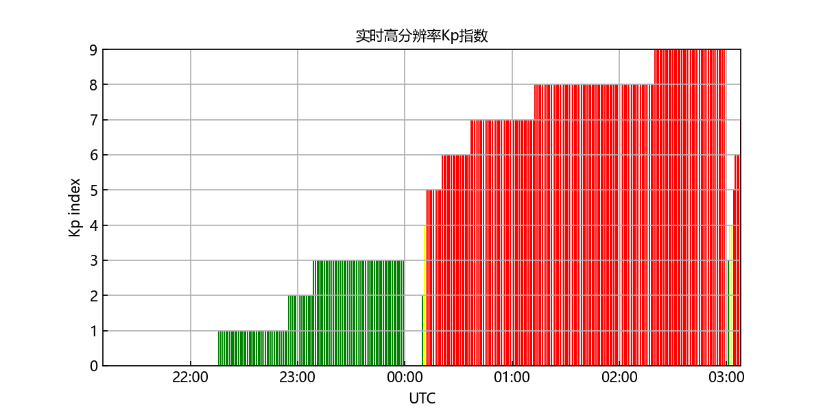 北京时间11月12日8时开始,地球出现磁暴过程,实时地磁活动指数Kp值一度达到9。