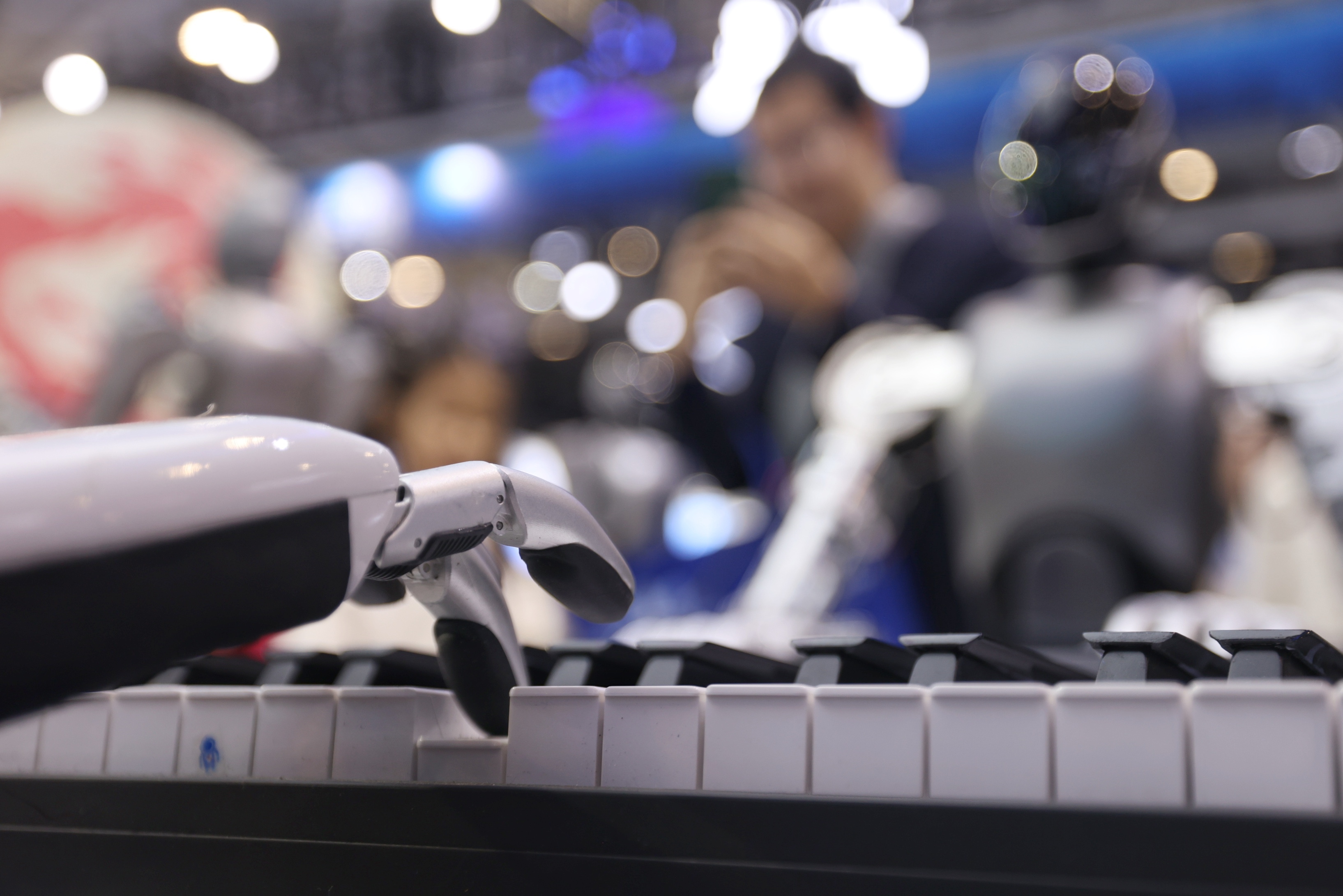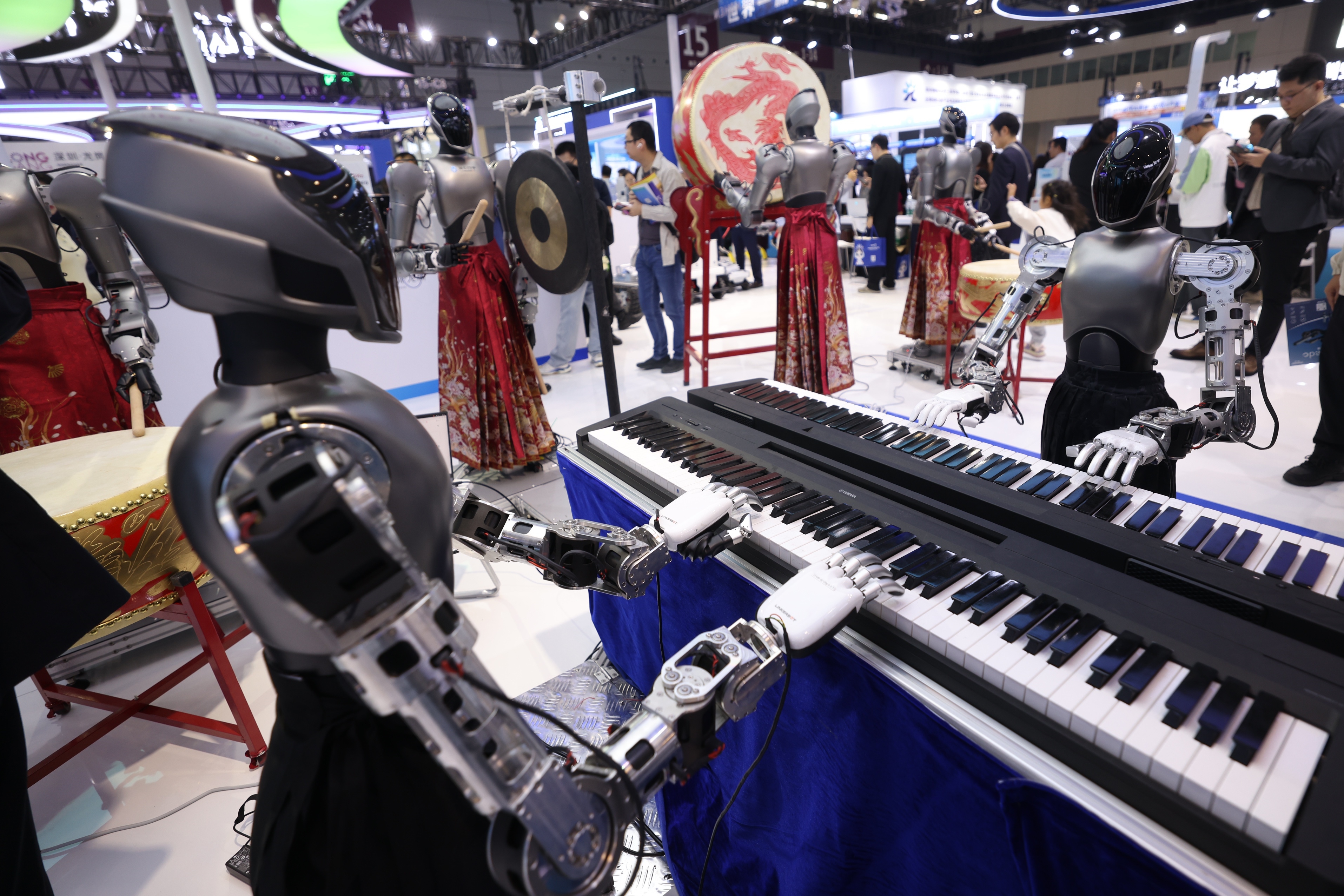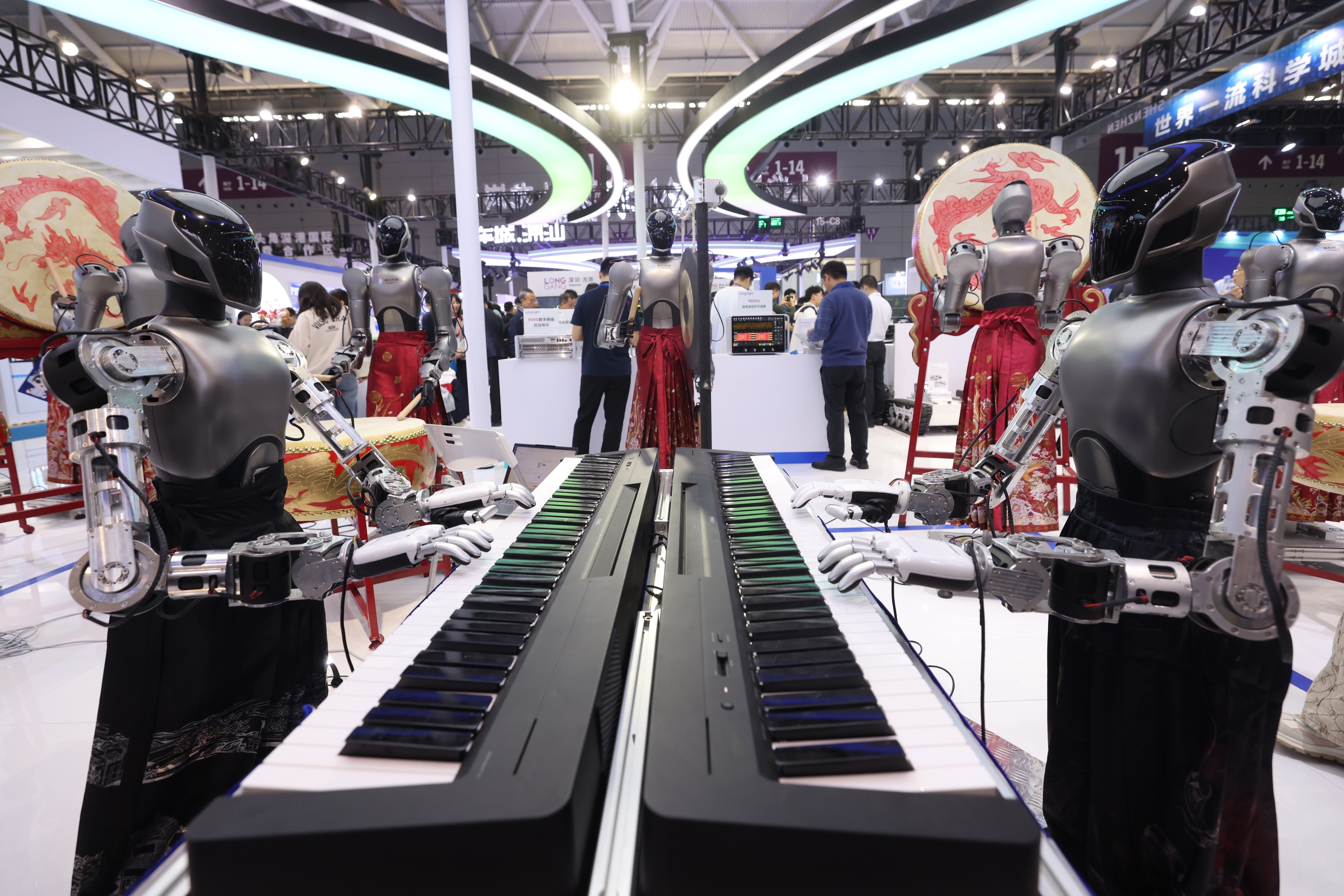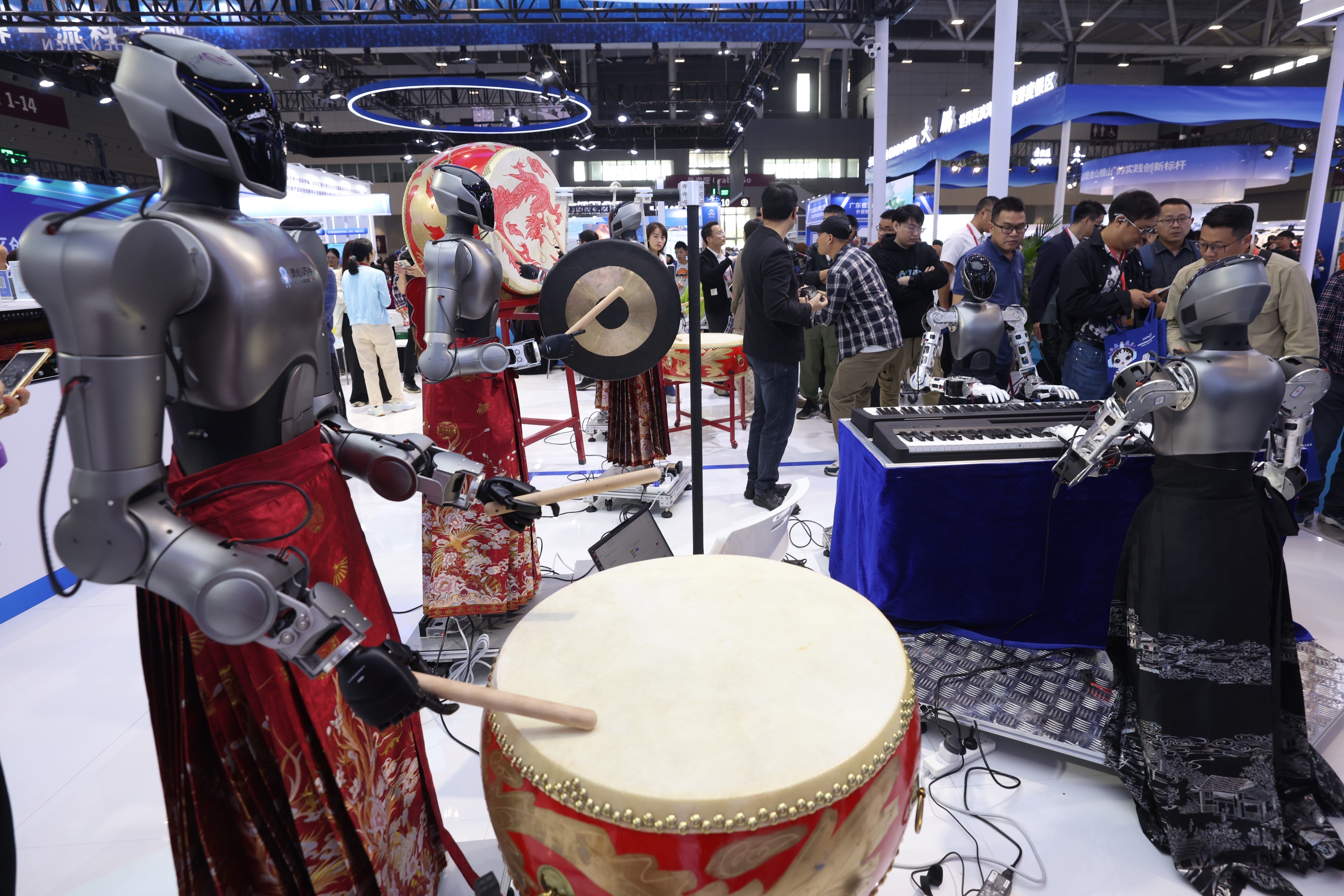这支特殊的乐队中,钢琴、大鼓等多类“乐手”配合默契,现场演绎曲目,在机器人身上生动展现出科技与艺术的碰撞。