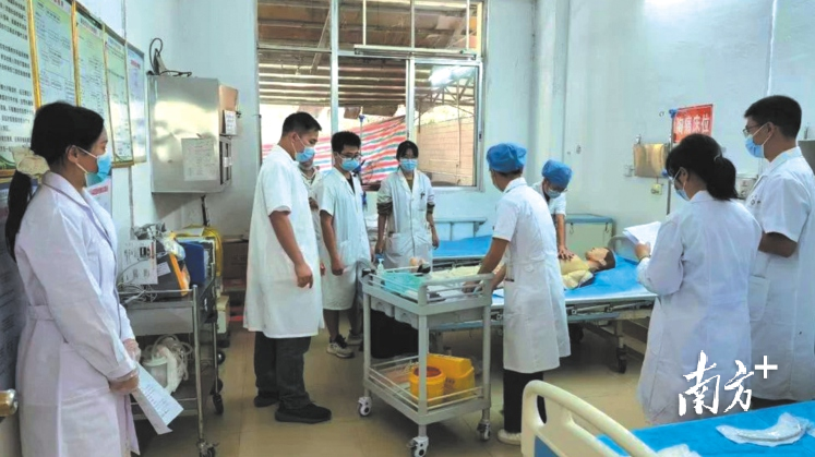 茂医帮扶队在基层医院开展突发心跳骤停患者应急抢救演练。