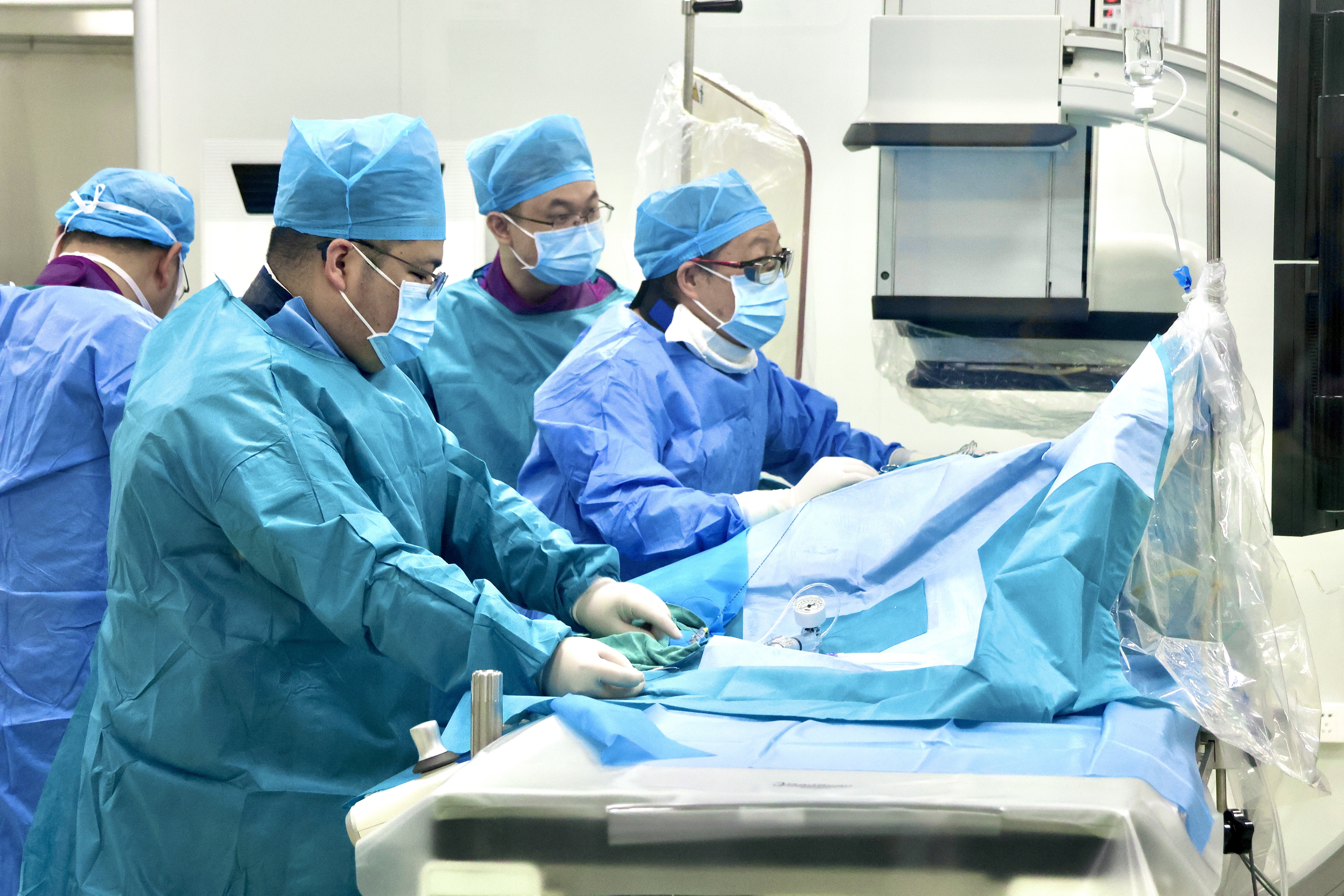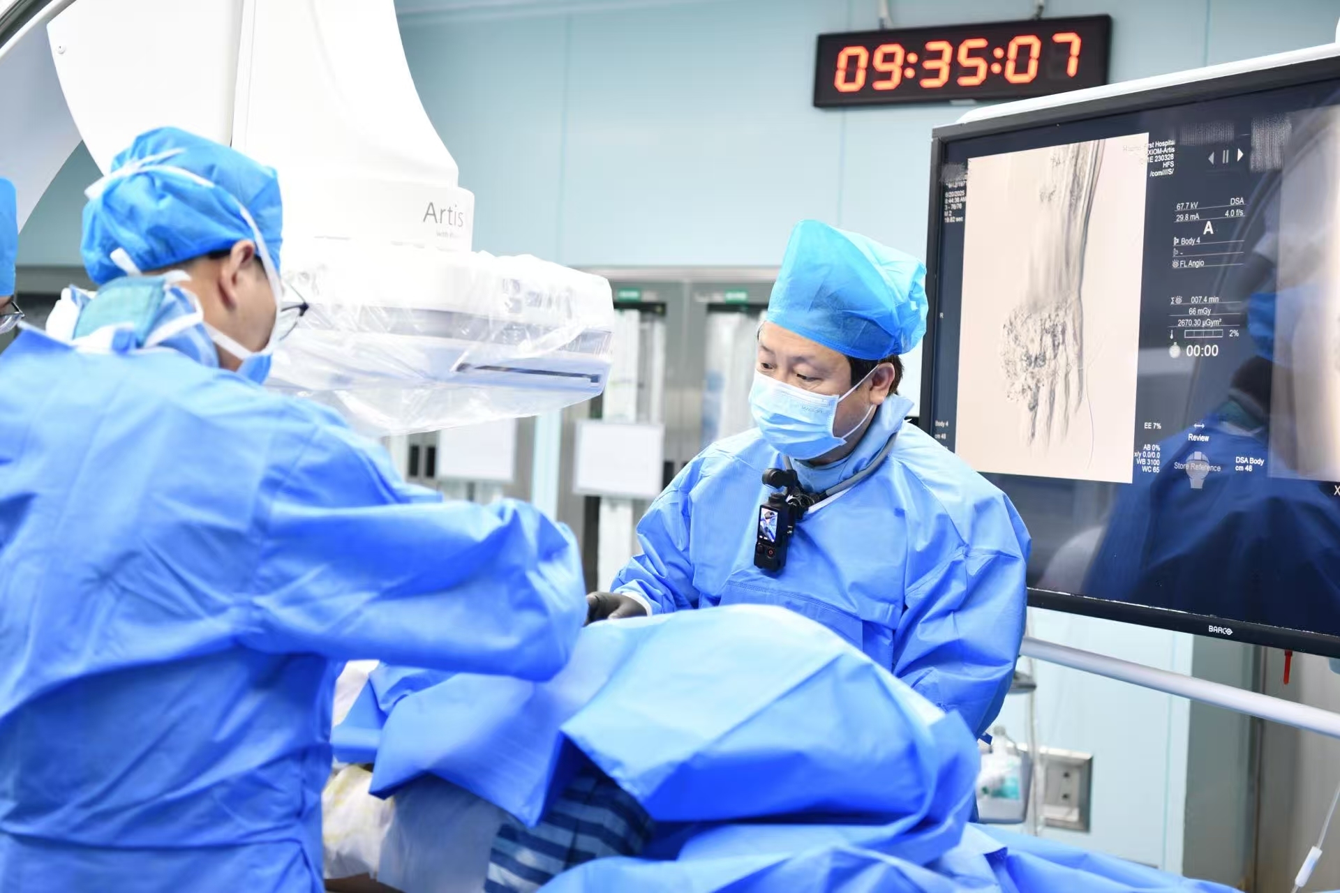 王革介绍,相关数据显示,我国下肢动脉疾病患者数量已超过4000万,在60岁以上人群中,发病率高达15%-20%。该例患者年事已高,下肢动脉病变极为严重,存在多节段狭窄闭塞的情况,膝下三支动脉均出现闭塞,且无明显主干,流出道条件不佳,这无疑增加了手术难度,同时也使患者面临较高的截肢风险。以往针对此类患者,传统治疗方式往往需要植入支架。而此次手术,团队采用了药物涂层球囊进行血管扩张,成功避免了支架植入,这一创新举措有助于提升血管的远期疗效。手术的圆满成功,离不开两家医院全体人员的鼎力支持与紧密协作。