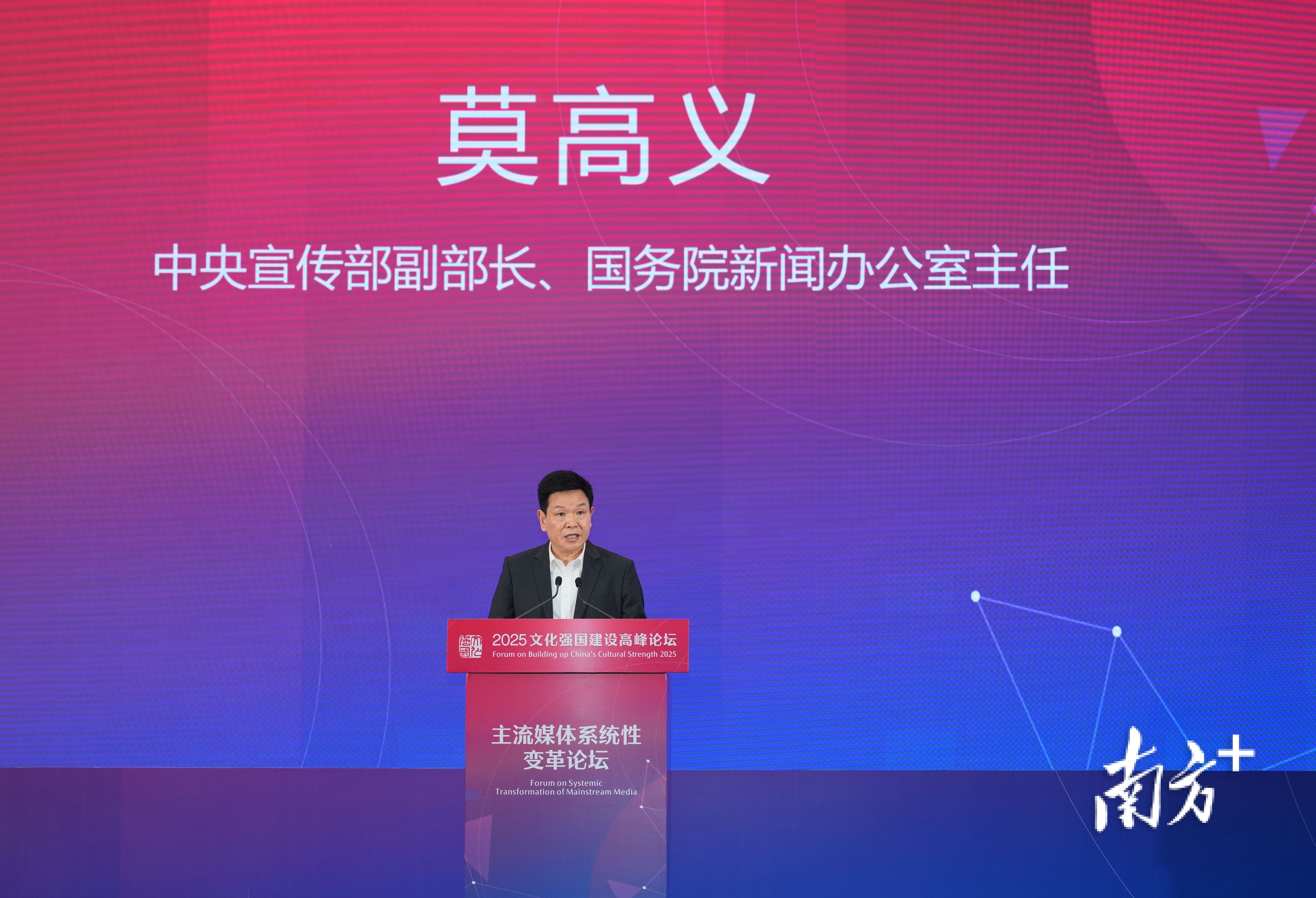 5月27日上午,由中央宣传部主办的2025文化强国建设高峰论坛“主流媒体系统性变革”论坛在深圳举行,中宣部副部长、国务院新闻办公室主任莫高义出席并发表主旨演讲,围绕这一重要课题,重点谈了四点意见。