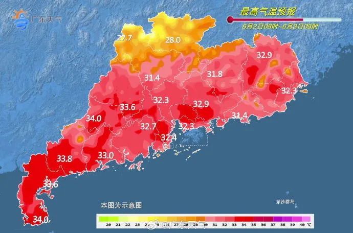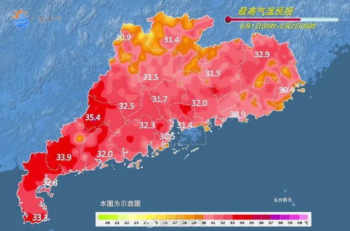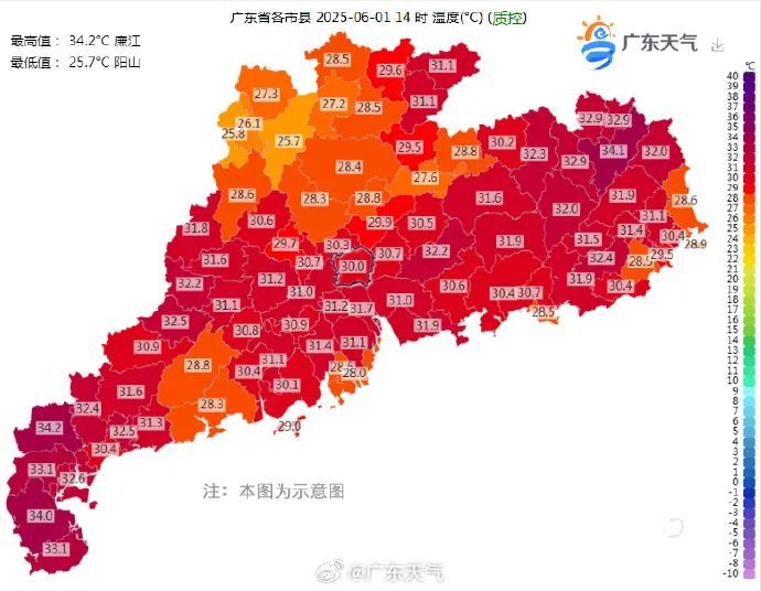据@广东天气,6月1日,广东省以多云天气为主,气温继续回升,大部市县最高气温升高至30℃以上。