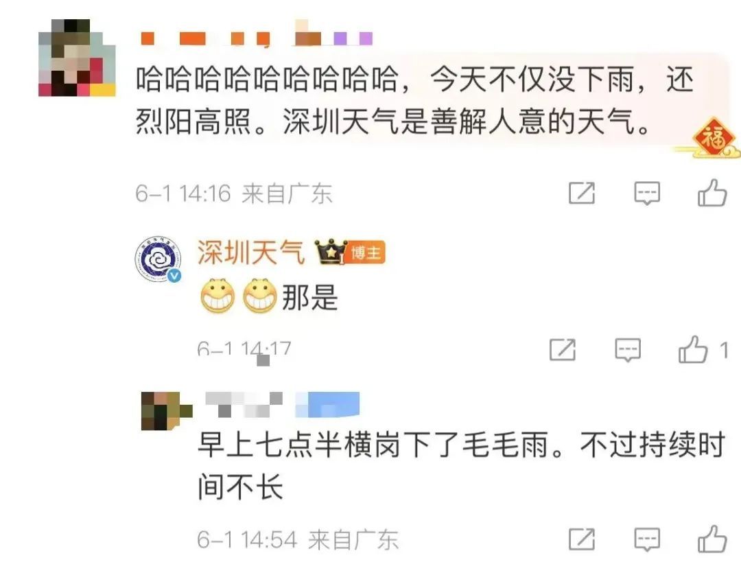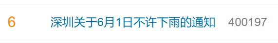 6月1日,话题“深圳关于6月1日不许下雨的通知”登上热搜。