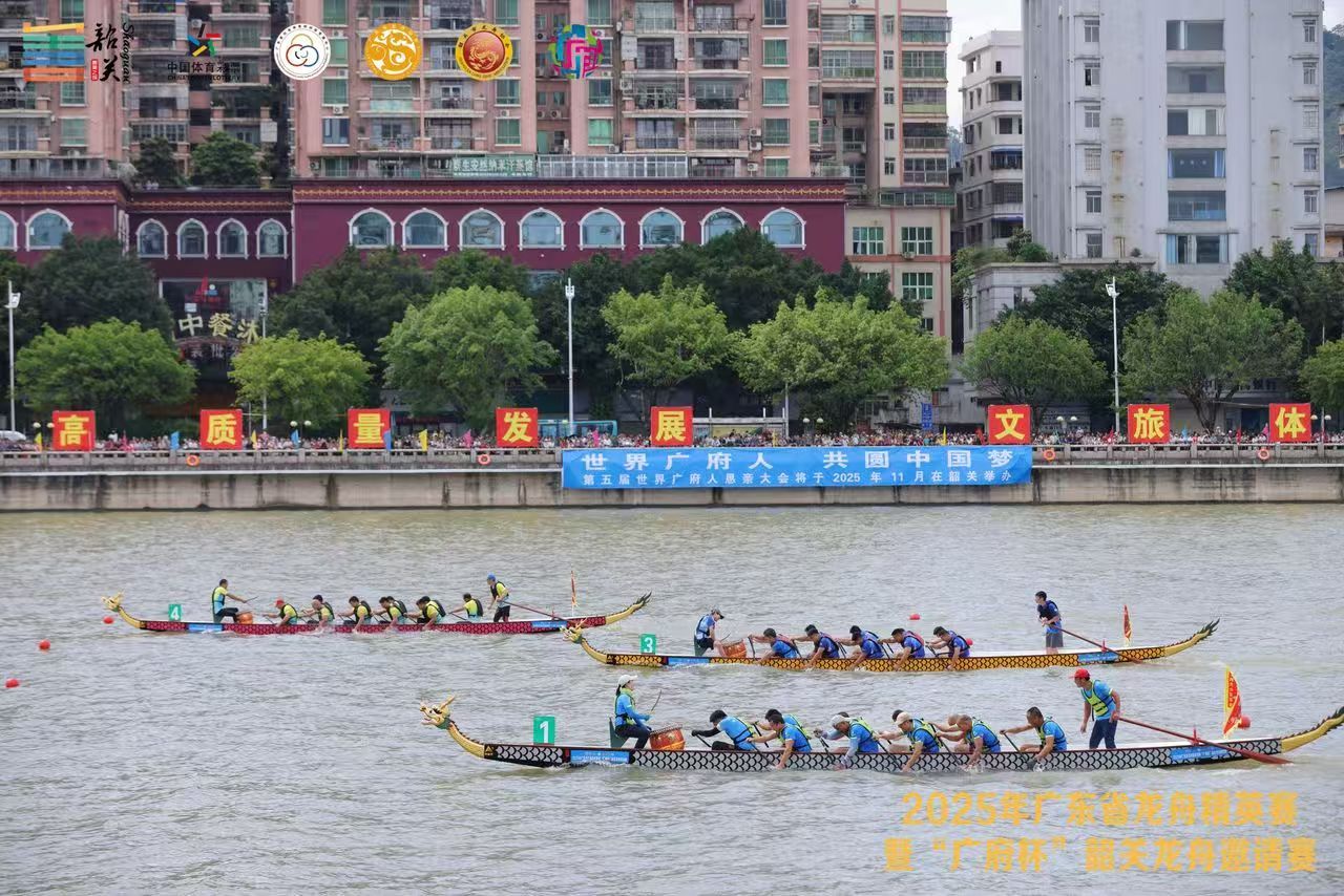 今年6月,广东省龙舟精英赛暨“广府杯”韶关龙舟邀请赛在浈江河面北江桥至曲江桥水域举行。来自安徽、广府地区及本地的32支龙舟队齐聚韶关,在12人龙舟500米直道竞速中展开激烈角逐。这场赛事不仅是一项传统水上竞技活动,更是广府文化的重要载体,为韶关打造“全国高质量户外运动目的地”添砖加瓦。