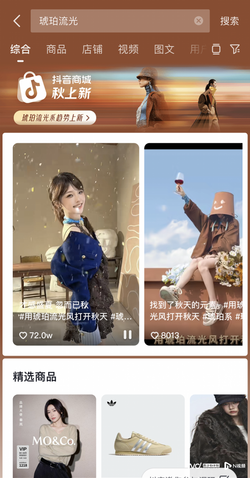 9月26日,抖音电商“琥珀流光”秋上新大秀在上海举办,该大秀以游牧诗人、极简高智、甜酷千金、都市运动、户外机能、复古极繁六种风格呈现。话题#全明星琥珀流光风大秀现场 登上抖音热榜第九位、种草榜第一位,为新品赢得更多市场关注。直播期间,超60个品牌于直播间发布新品,吸引了近400万次互动,实现“即看即买”。