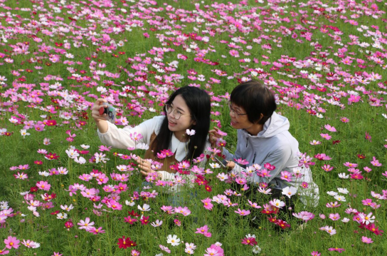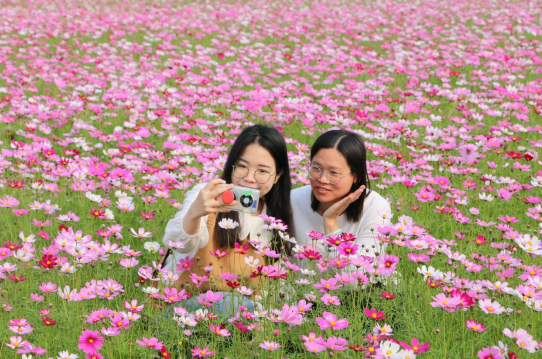 赤坎百亩格桑花盛开!