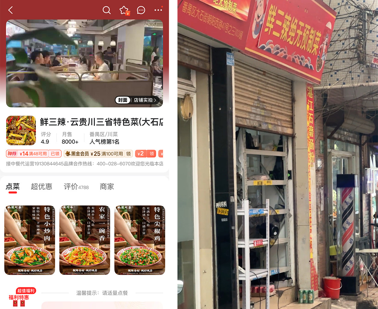 对此,在客村经营小炒外卖店的饶先生解释,“网店的名字和图片都是品牌运营方自己加的,我们加盟他们,他们就会配套做线上推广。”