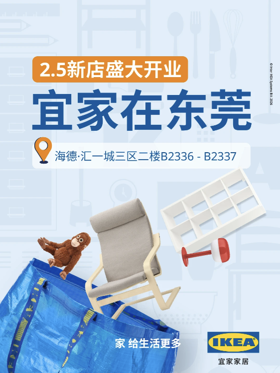 近日,宜家官方宣布,东莞首家门店将于2月5日开业,标志着东莞市民未来在家门口即可体验其标志性的家居产品与场景化服务。详情→