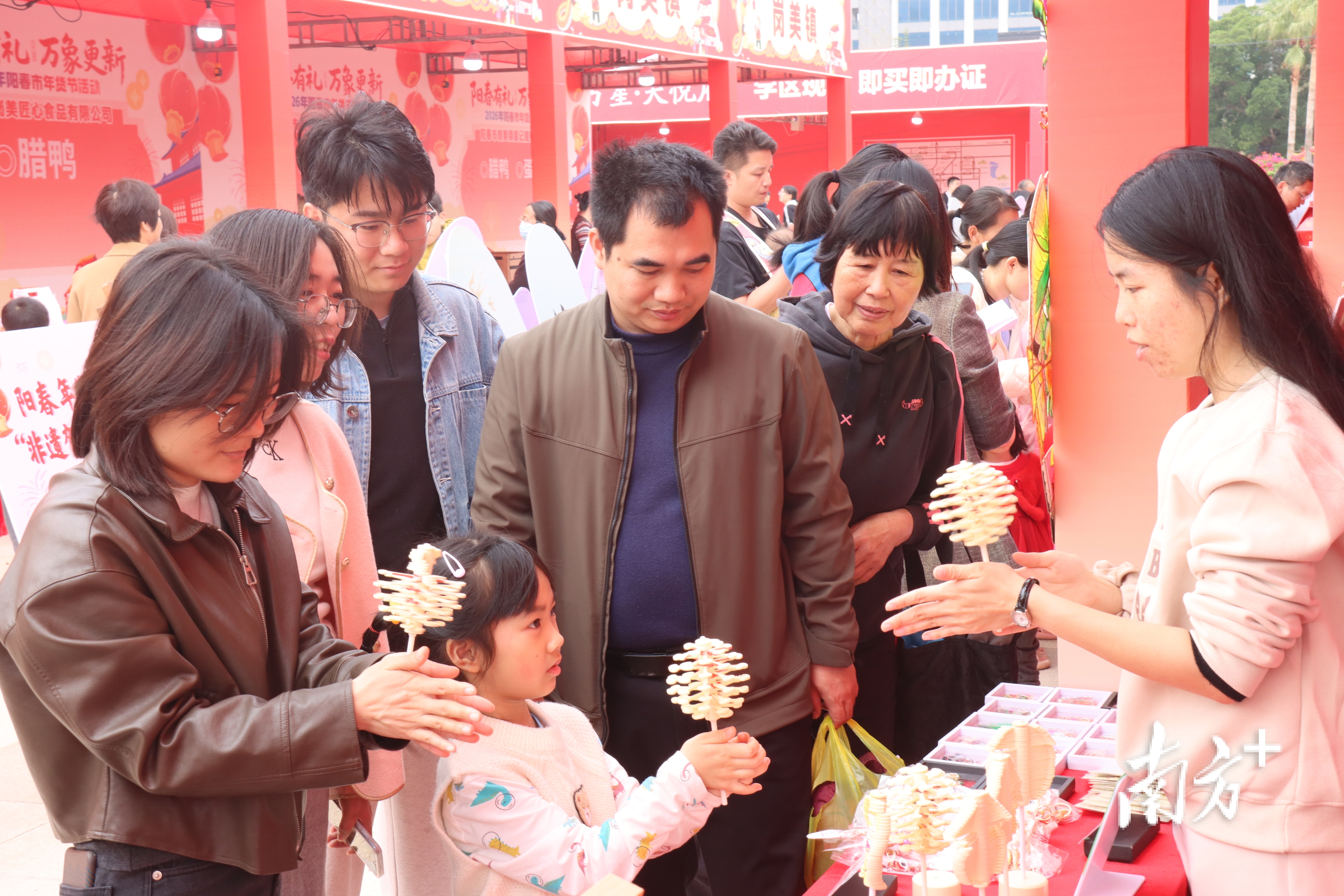 阳春市工业和信息化局党组成员、副局长杨灏向笔者介绍,本次年货节精心规划216个展位,不仅汇集了17个镇街特色产品、广东老字号、粤手礼、阳手礼等优质好物,还增设了阳江、阳春非遗展区,为市民游客打造一站式年货采购平台。活动旨在为市民营造浓厚新春氛围,让大家把阳春优品带回家,同时为本地企业搭建集中展示的舞台,提升产品与品牌影响力。此外,春节期间还联合金融机构推出400万元惠民消费券,让群众和游客切实感受到政府的关心与支持。随着去年年底广湛高铁、阳信高速的通车,阳春与大湾区联系更加密切,也诚挚邀请全省乃至全国各地的游客前来阳春过大年。