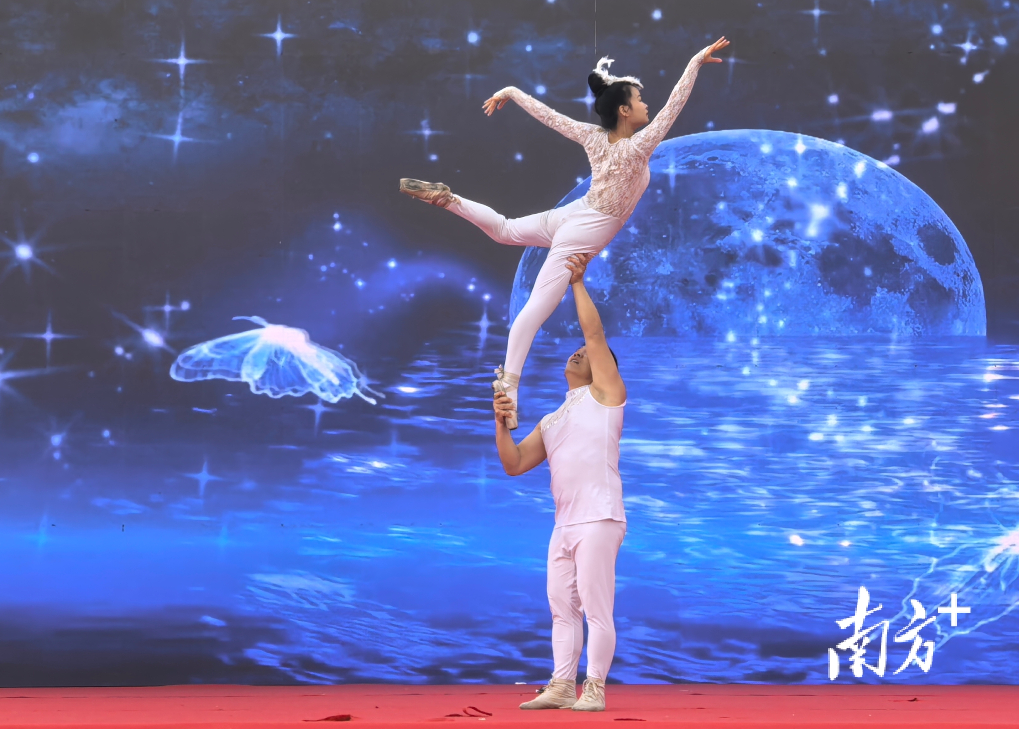 人龙舞蜿蜒腾跃,气势磅礴;身着醒狮服饰的机器狗灵活作揖,与孩子们互动;杂技《肩上芭蕾》惊险唯美,力与美惊艳绽放……