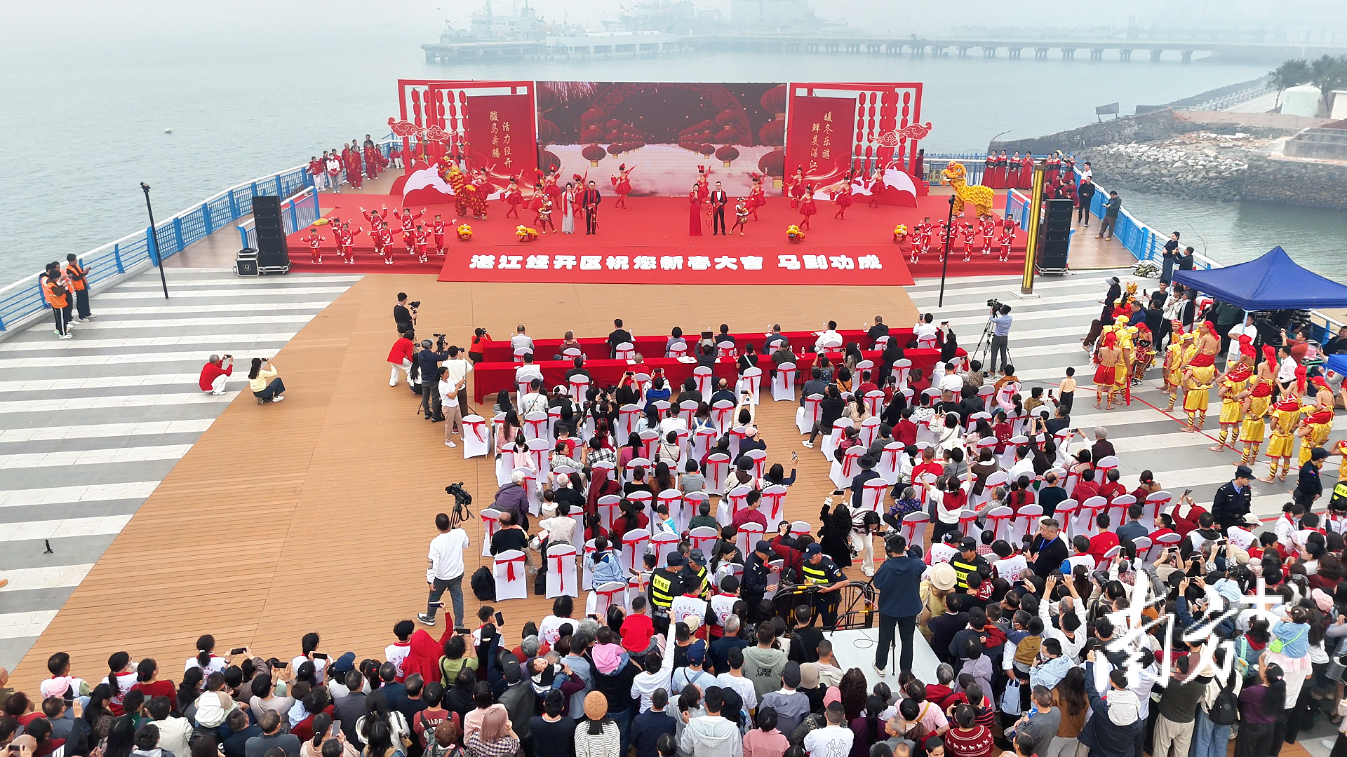 大年初一,湛江经开区2026年春节“暖冬乐游・鲜美湛江”系列活动在海豚湾活力街区启幕,从四面八方赶来的市民游客将现场围得里三层外三层,掌声、笑声、喝彩声交织成新春的欢歌。
