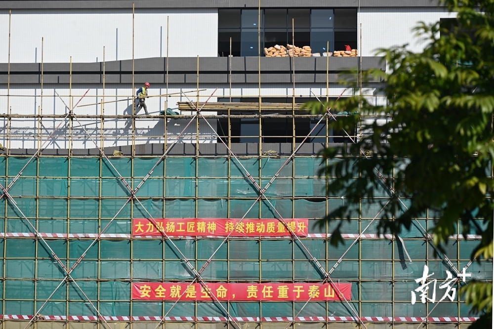 清远高新区电子信息产业园入驻项目施工现场,工人们在各自点位上忙碌着。陈伟毅 摄