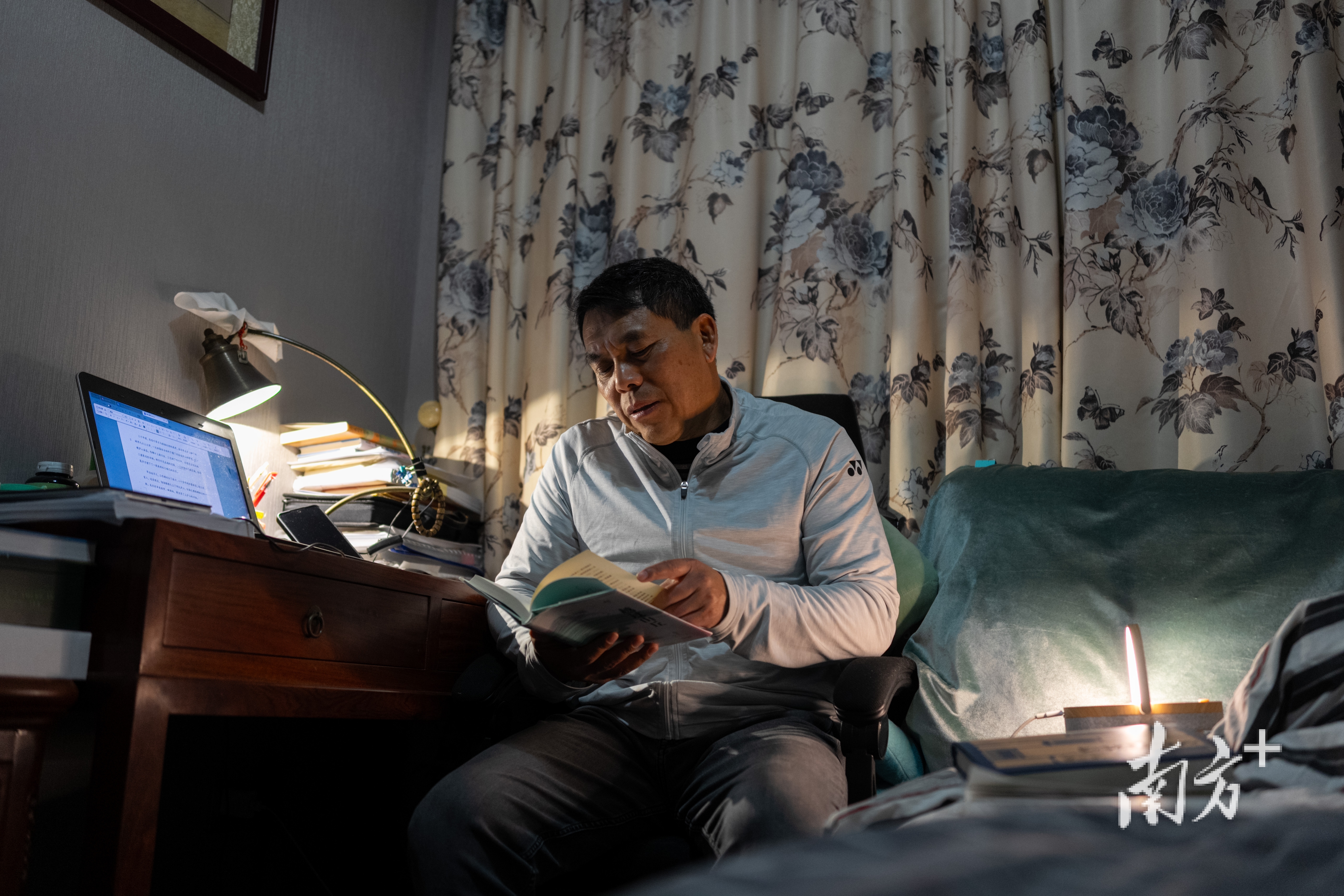 在看书的章新宏。