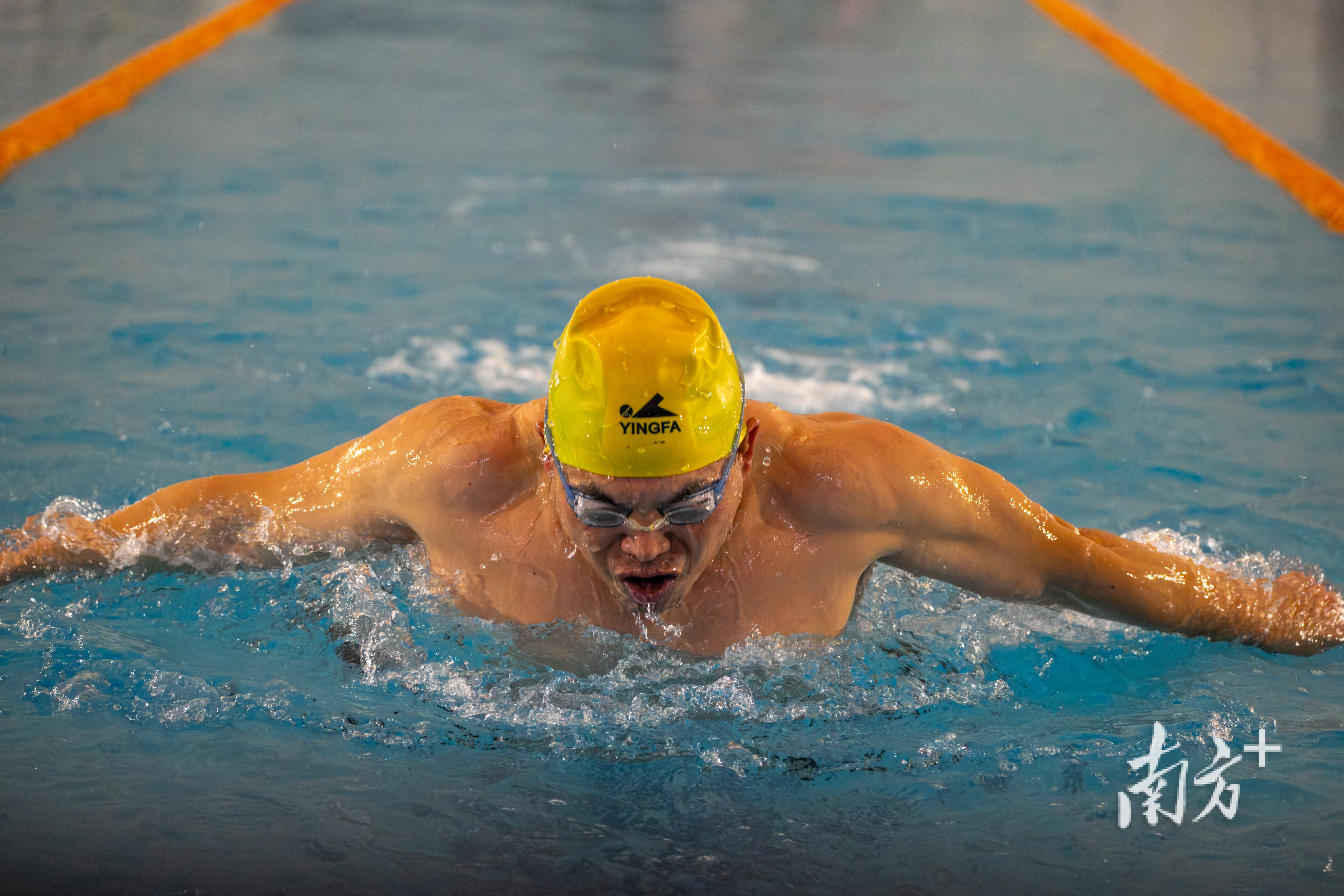 游泳时的章新宏。