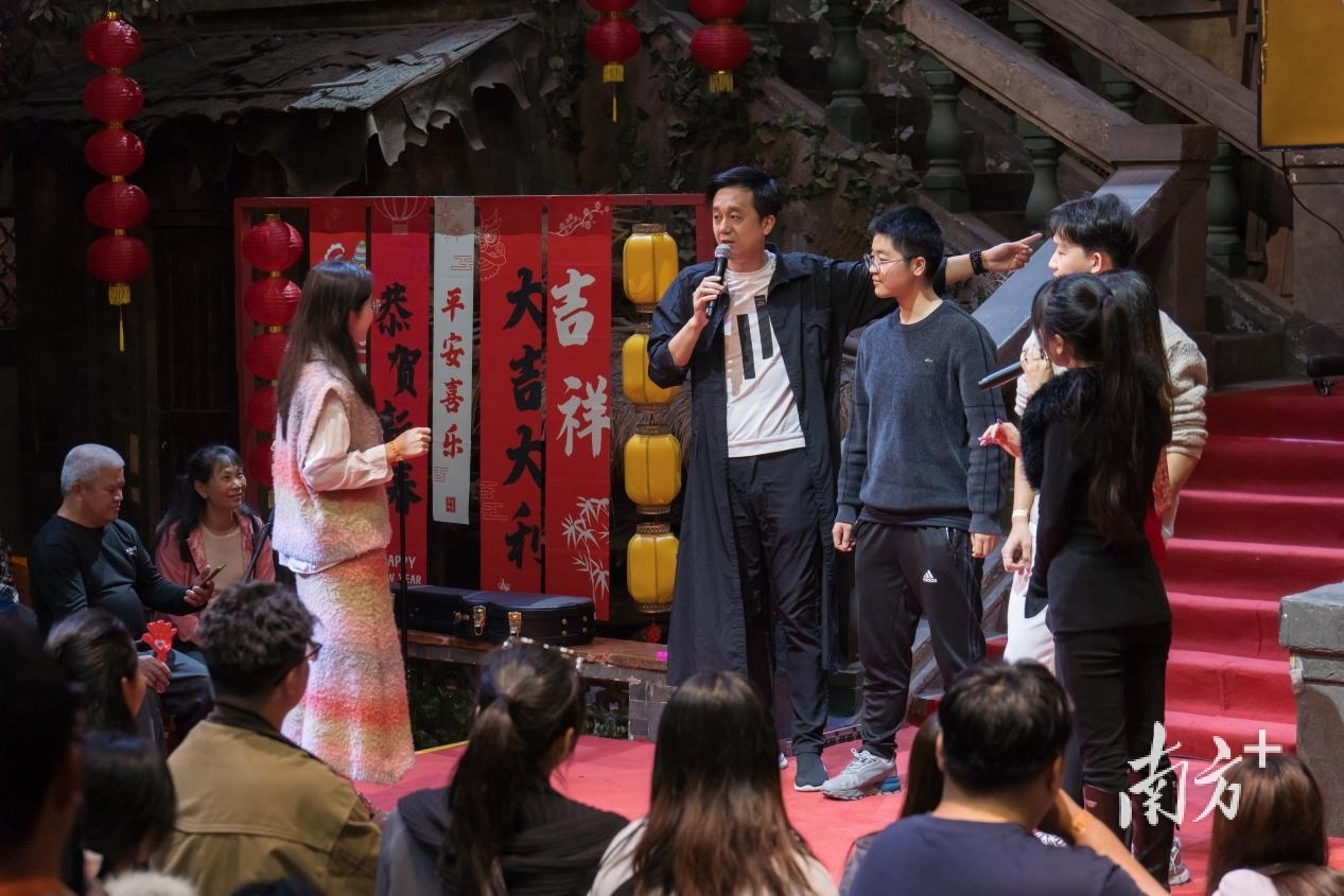 当晚,拍摄基地内灯笼高悬、对联映红、福字点缀。80位幸运观众在充满年味的剧中实景里与主演深度互动,共赴一场长达4小时的“街坊团圆之约”。