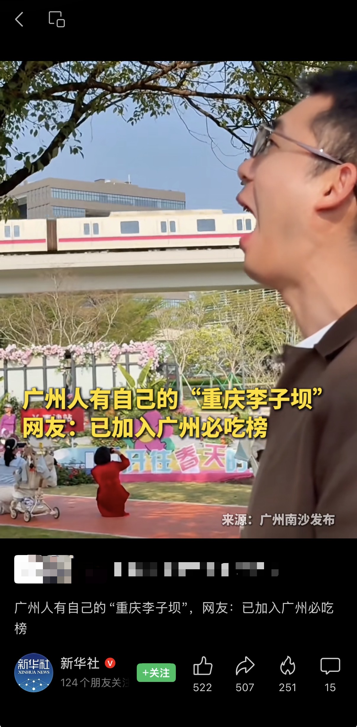 本周,一条由“广州南沙发布”推出的“来都来了,吃个地铁再走吧”短视频席卷全网。短短几天被中国广州发布、广东发布、新华社等官方视频号集体“翻牌”,直接把“广州也有自己的重庆李子坝”送上热搜,还引来重庆轨道交通官方微博喊话:“欢迎入伙!”