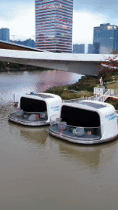 更有趣的是,无人船从远处看像个碗,坐在上面,简直就是坐在碗等着菜上桌。运气好,还能遇上“双拼”的,仪式感拉满!