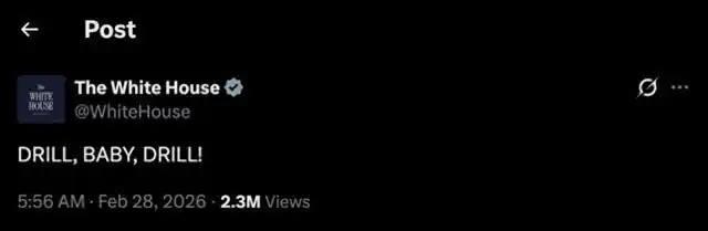 2月28日,美国和以色列宣布,对伊朗发动联合军事行动。同时,白宫的社交媒体账号更新了一条动态,只有简短的一句话: