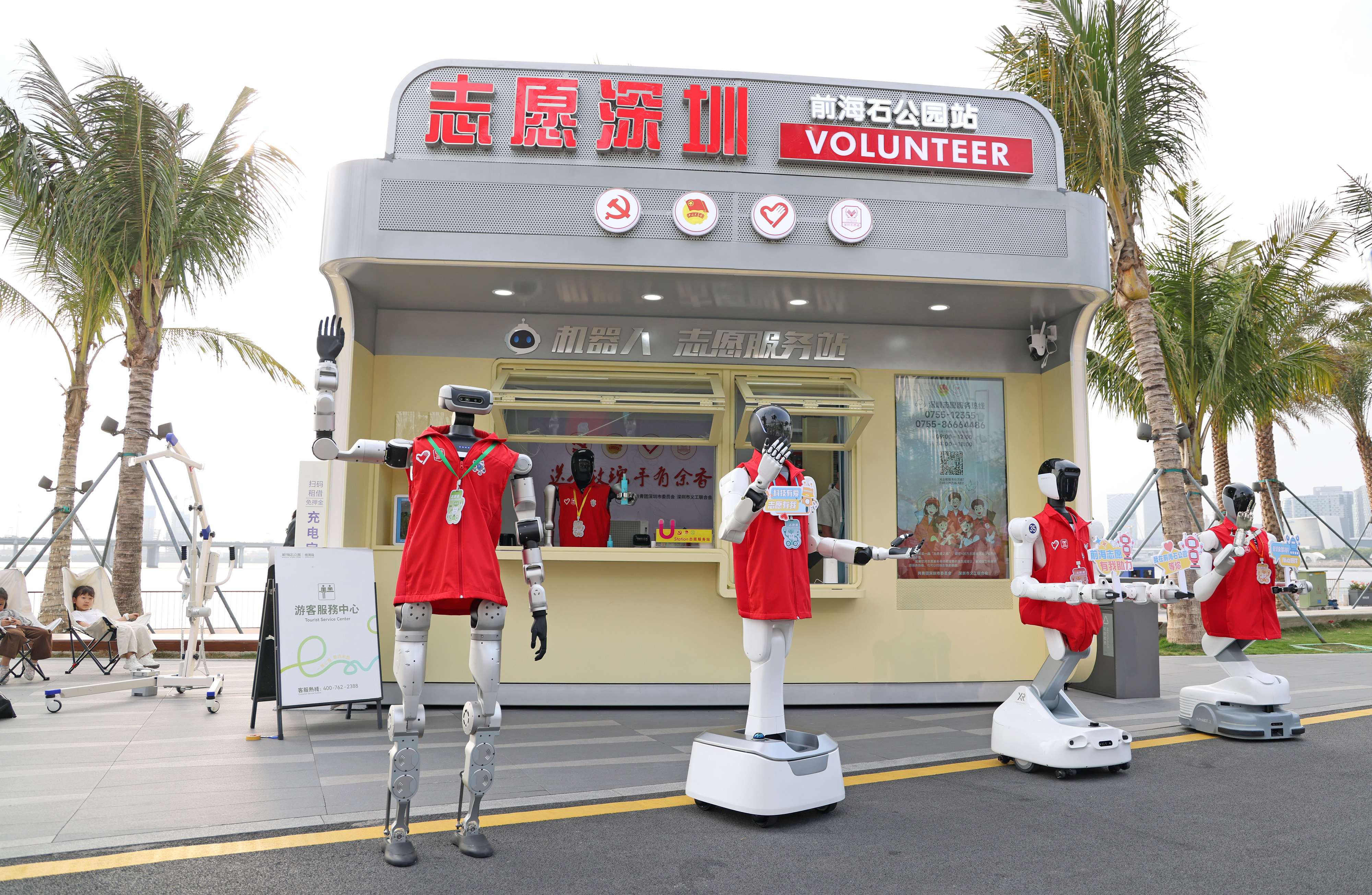 这是由深圳市前海管理局、共青团深圳市委联合打造的全国首个机器人志愿服务站。当日,5名“机器人志愿者”同步上岗,创新搭建“机器人+志愿服务”新模式,更为深圳办好2026APEC、展现科技感与未来感兼具的国际城市形象注入鲜活动能。