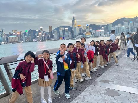 张槎中心小学学生秋假研学打卡香港维多利亚港。