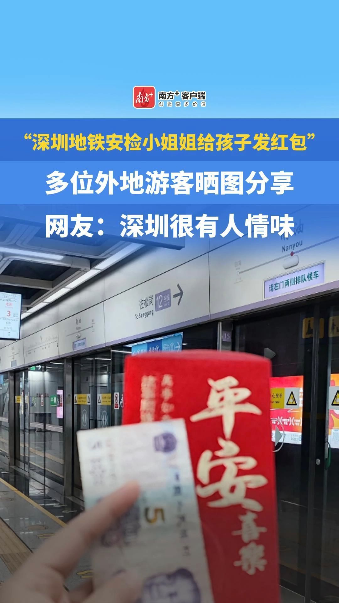 “深圳地铁安检小姐姐给孩子发红包”,多位外地游客晒图分享。
