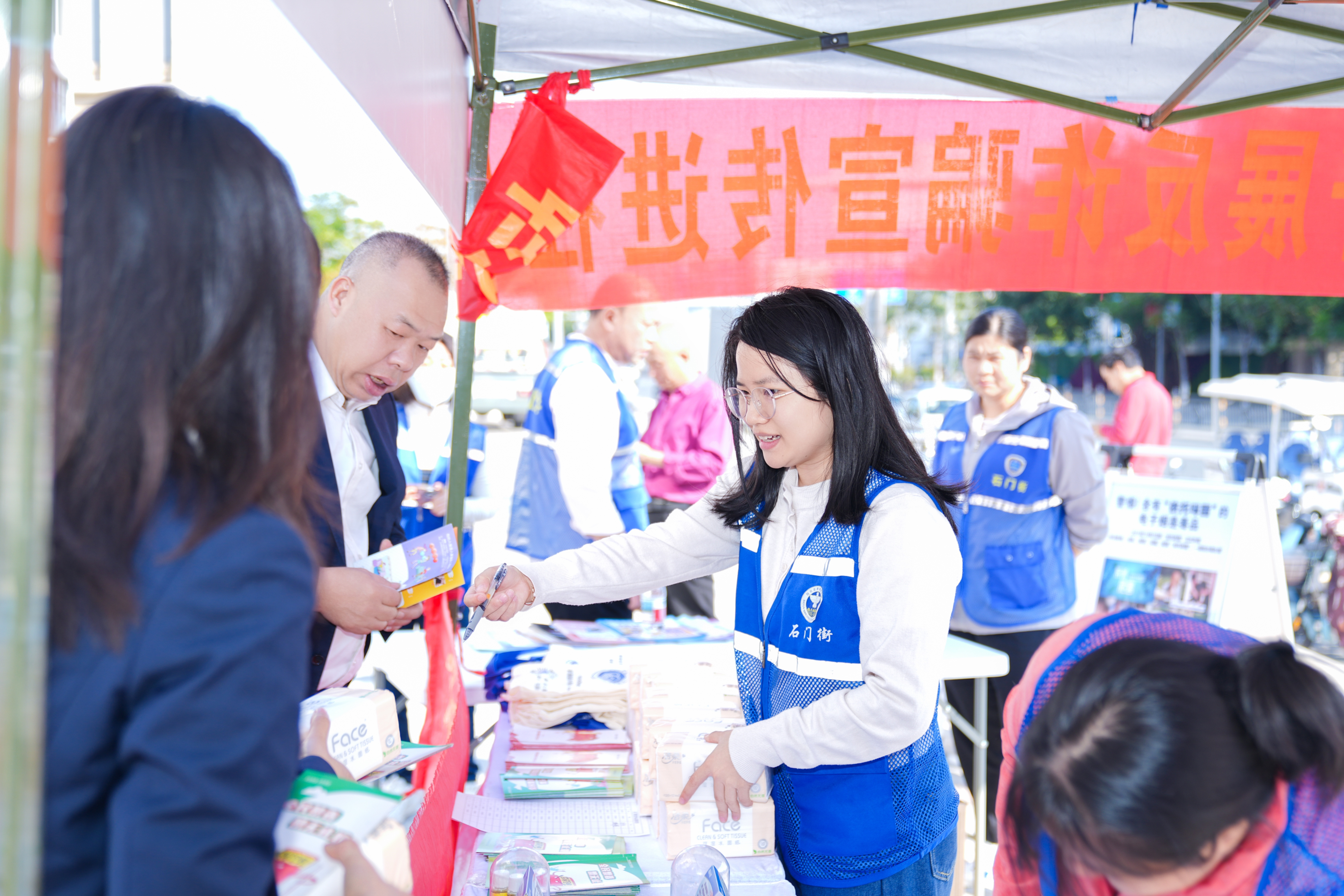 值得一提的是,活动现场精心设置了多元化民生服务宣传摊位,涵盖打假识假辨假、消费维权、文明交通、生态环保、禁毒宣传、流动人员合法权益普及等多个群众关心关注的领域。各相关部门工作人员现场值守,耐心为群众答疑解惑,提供专业的咨询指导服务,一站式回应群众各类诉求,手把手教群众识别假冒伪劣商品、掌握维权方法,吸引了众多市民驻足参与、咨询学习,切实将维权知识、法律常识送到群众身边。