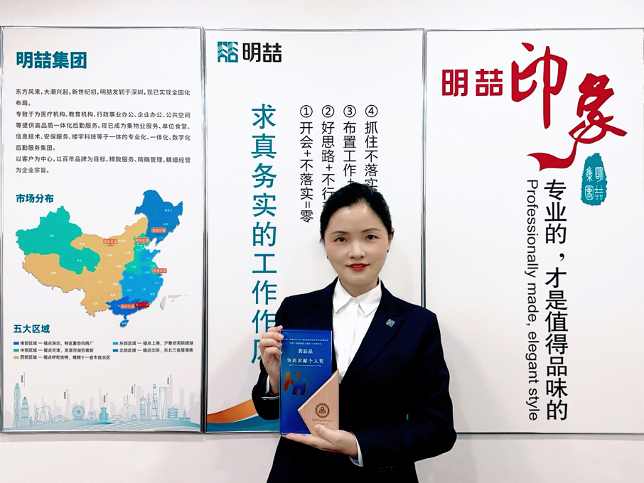 黄晶晶同志自2000年4月起从事高校后勤服务,扎根物业领域20余载。2014年随高校物业社会化改革加入明喆集团,持续服务深圳职业技术大学。2024年任深职大项目总经理,统筹校内五大项目;2025年兼任南山区域多项目管理,目前管理建筑面积约294万平方米,带领团队1466人,展现出卓越的领导与统筹能力。她坚持以人为本筑牢发展根基,常态化开展“夏日送清凉、冬日送温暖、节日送祝福”及员工生日会、座谈会等活动,日常巡查中主动关注员工动态,定期谈心解难,有效增强团队凝聚力。