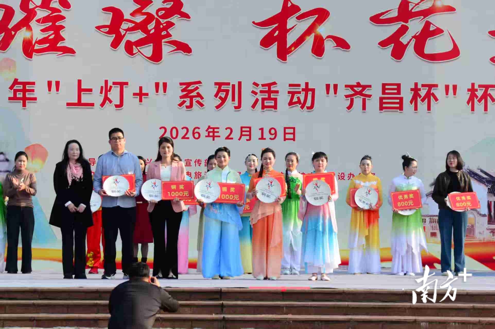 2月19日下午,2026年兴宁市“齐昌杯”杯花舞大赛在明珠文化广场精彩上演。本次大赛以“千灯璀璨杯花竞韵”为主题,是兴宁市2026年“上灯+”系列活动的重要内容。兴宁市委常委、宣传部部长罗丽思出席活动并颁奖。