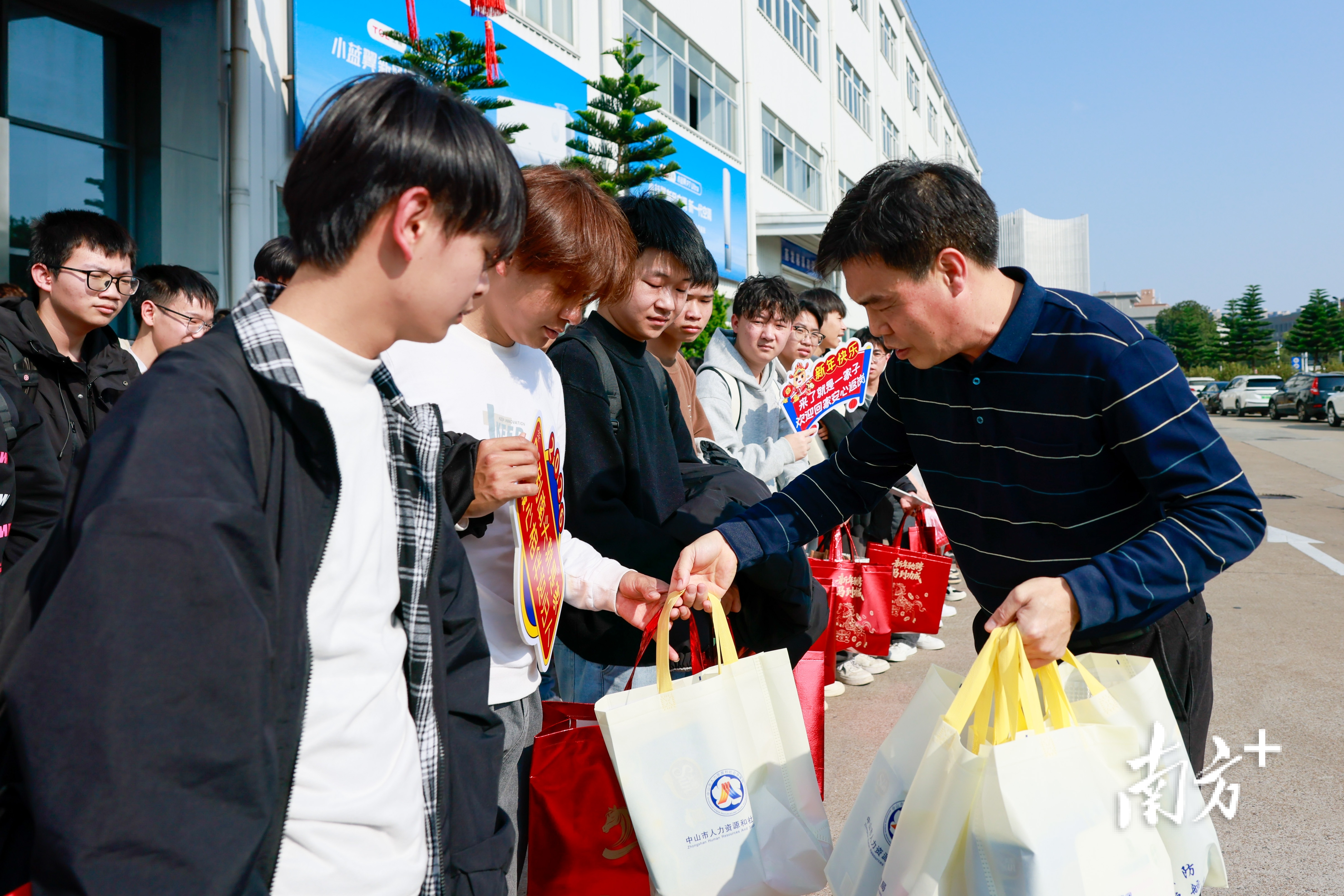 车门开启,一张张年轻的脸庞探出车身。100多名来自广西梧州职业学院机电专业的“订单班”学子,提着行囊,眼中闪烁着对未来的憧憬,踏上了中山的土地。等候多时的人社部门工作人员与企业负责人,为技能人才送上了装满关怀的“新春暖心包”。