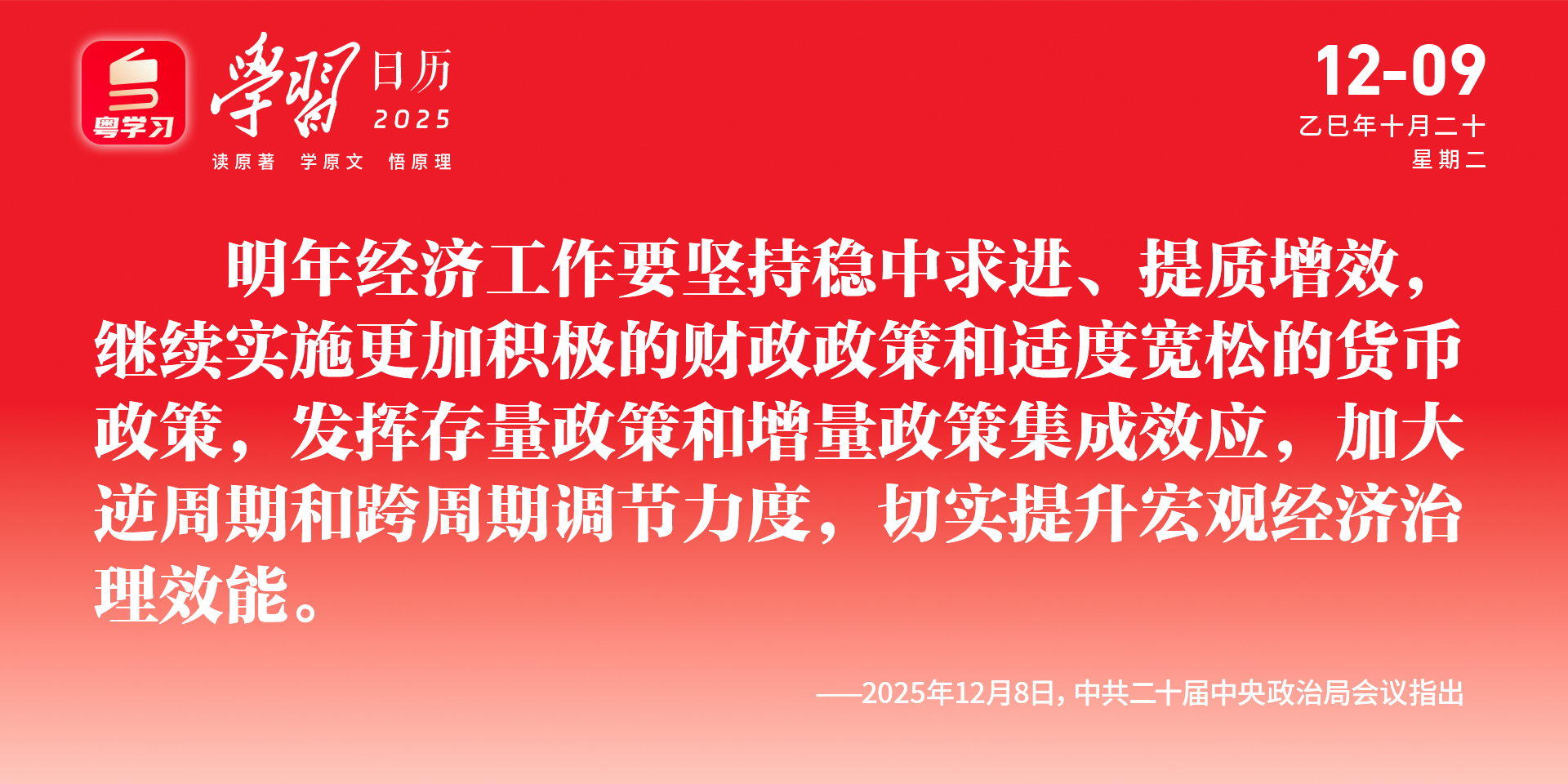 据新华社报道,中共中央政治局12月8日召开会议,分析研究2026年经济工作。会议对当前经济形势作出判断,并指出明年经济工作要坚持稳中求进、提质增效,继续实施更加积极的财政政策和适度宽松的货币政策,发挥存量政策和增量政策集成效应,加大逆周期和跨周期调节力度,切实提升宏观经济治理效能。详情>>