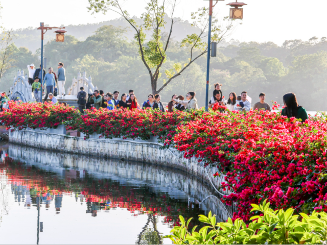 初冬的惠城,惠州西湖内一片生机勃勃,仿佛大自然的画笔在这里轻轻一抹,绘出一幅姹紫嫣红的画卷。这些“花路”藏不住了→