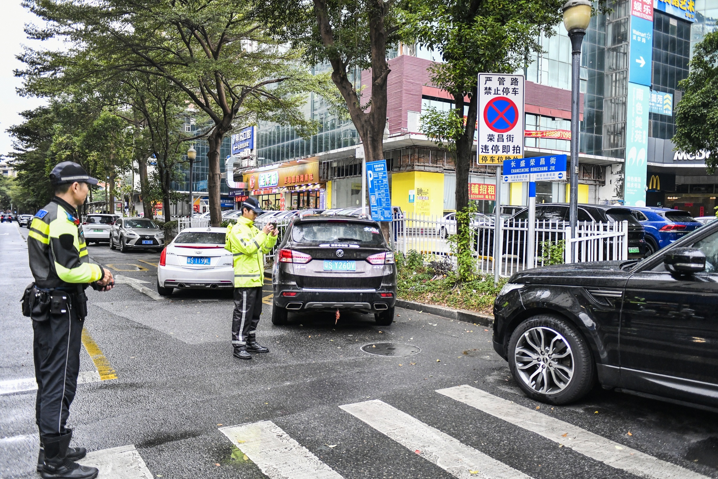 “体育路沿线有学校、沙埔头路周边是居民区、荣昌街毗邻商业区,这些路段车流人流量大,违停容易产生视觉盲区,造成安全隐患,而且这些路都是严管路,严禁违规停车。”警员表示,整治采取“教育+处罚”结合的方式,若驾驶人在场的会采取劝离警告,若不在场或拒绝驶离的将依法进行处罚。