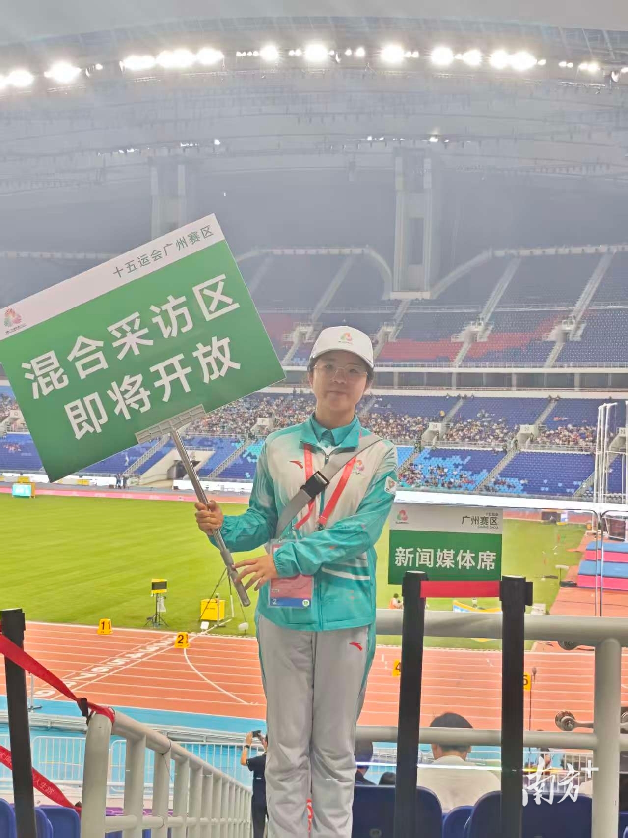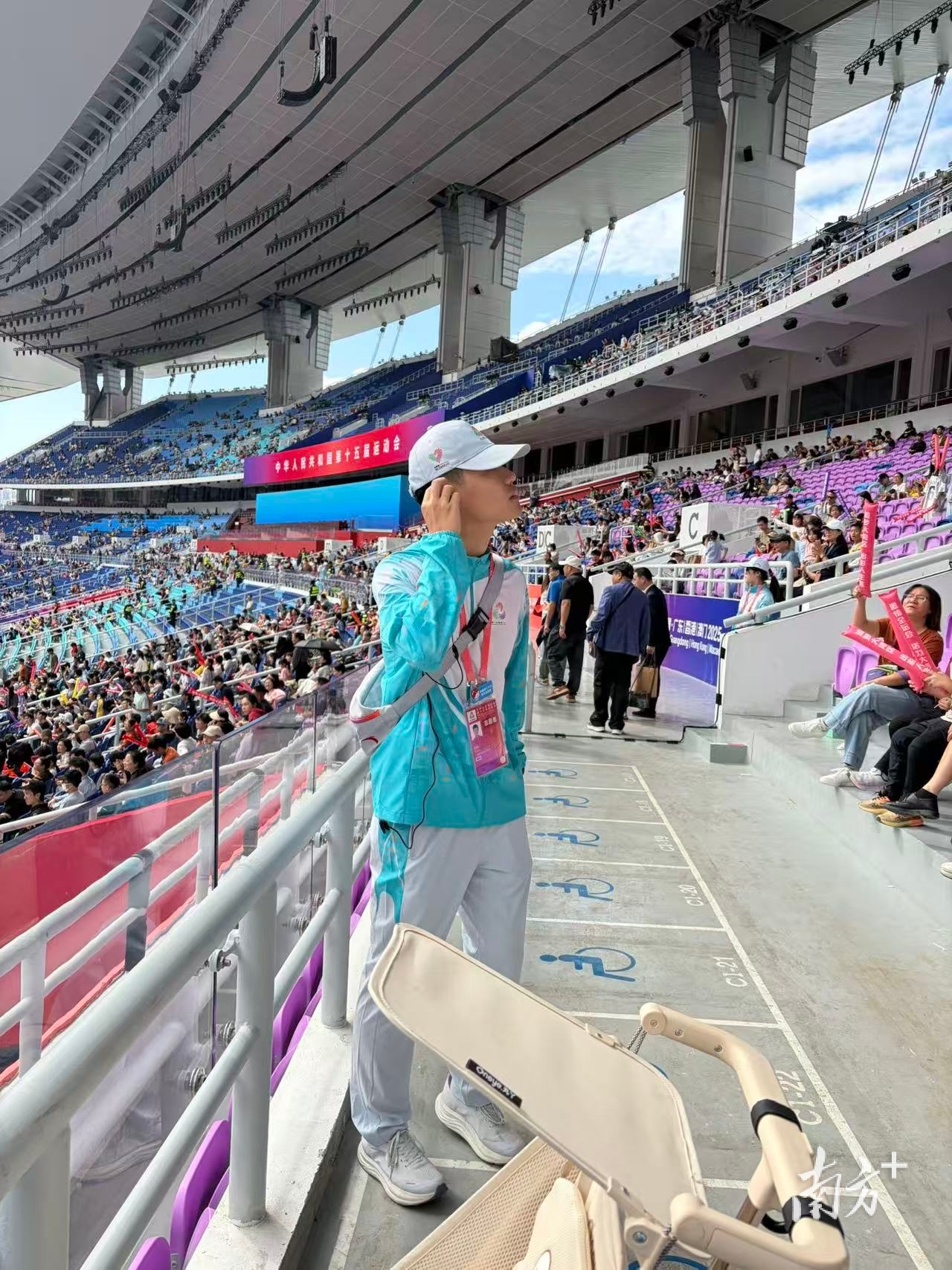 余卓斌在田赛场地服务时,虽然要求“不抢镜、不越位”,但运动员们依然注意到了他们的付出。“有运动员在结束热身后特意向我们说‘谢谢你们’,让所有的辛苦瞬间被理解。”