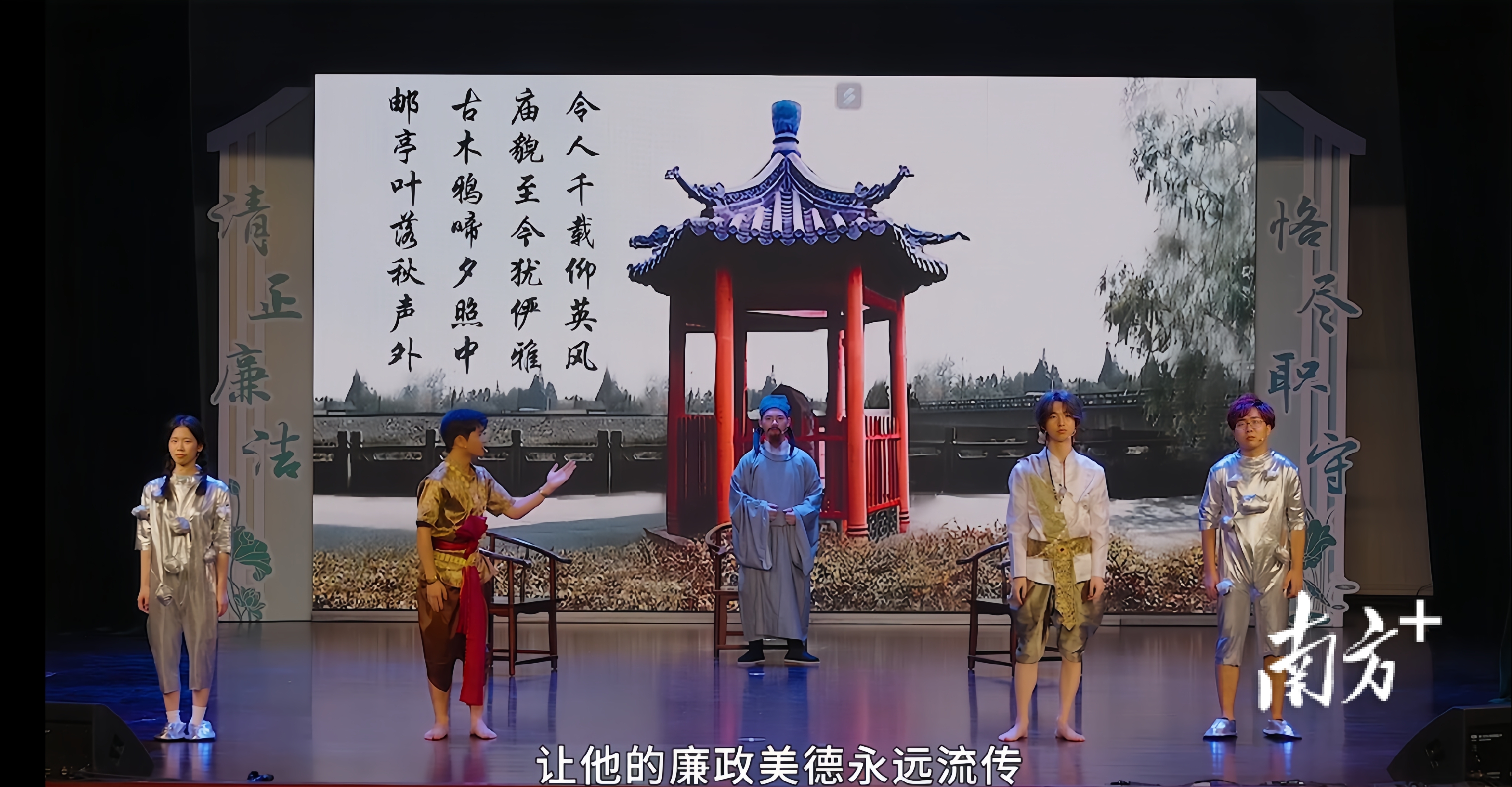 廉洁小品《却金千载仰英风》,立足东莞全国重点文物保护单位“却金亭碑”历史,通过创意改编、现代小品演绎的方式,再现了明代时期中泰通商交往中,东莞官员“却金守廉”的精神内核。小品以东莞职业技术学院泰国留学生来华学习为引子,穿插泰国学生“穿越”明朝,亲历东莞官员拒绝暹罗商人酬金的桥段,展现了中国廉政文化源远流长的历史传统。小品于2024年获教育部评为第九届高校廉洁教育系列活动全国优秀作品。