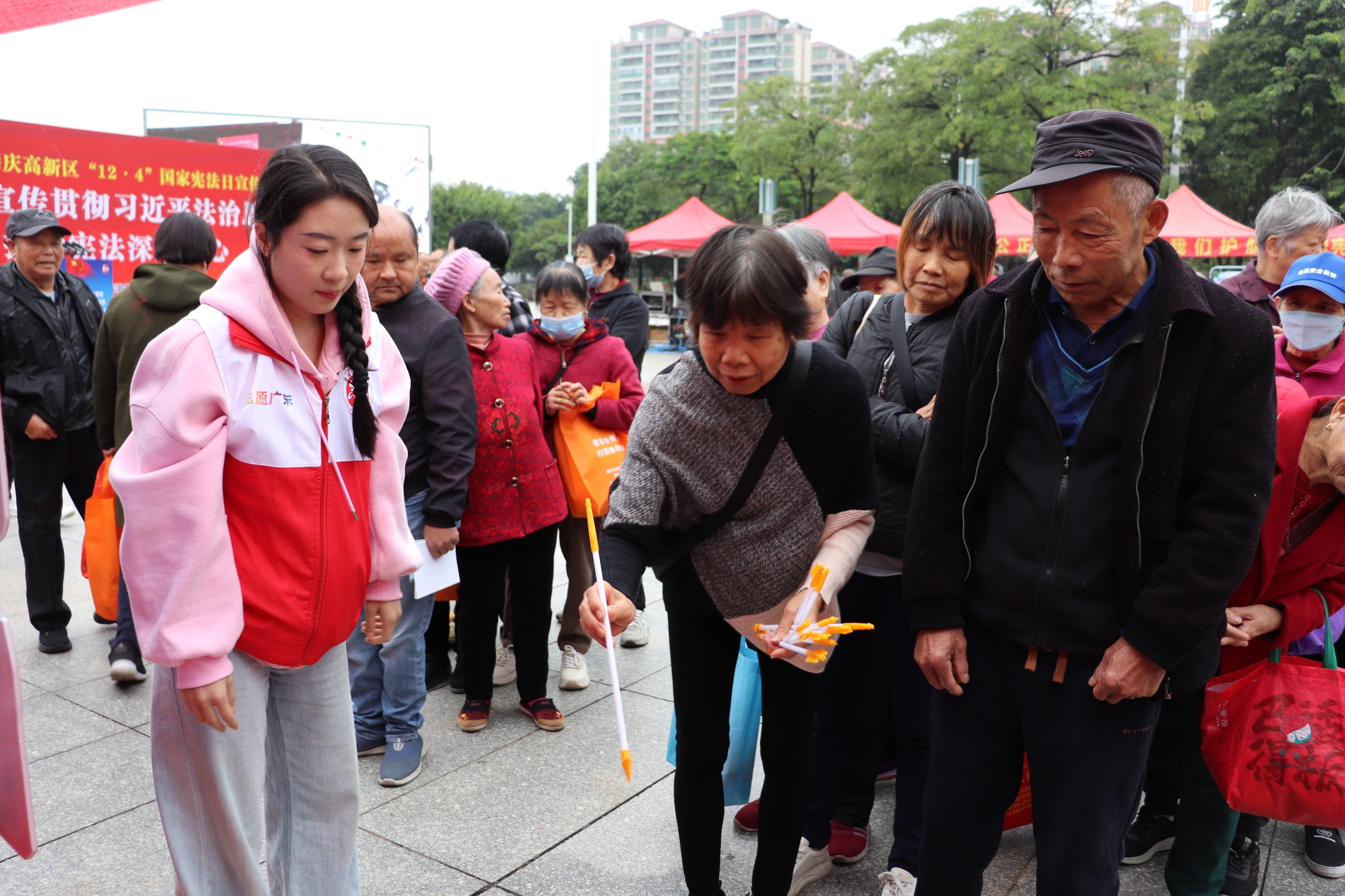 活动现场,肇庆高新区党工委副书记陈凯宏与群众一同参与。来自二十个普法成员单位的60余名业务骨干,通过发放资料、现场咨询等方式,围绕宪法、民法典、反诈等内容提供“面对面”法律服务,累计派发宣传资料3000余份。